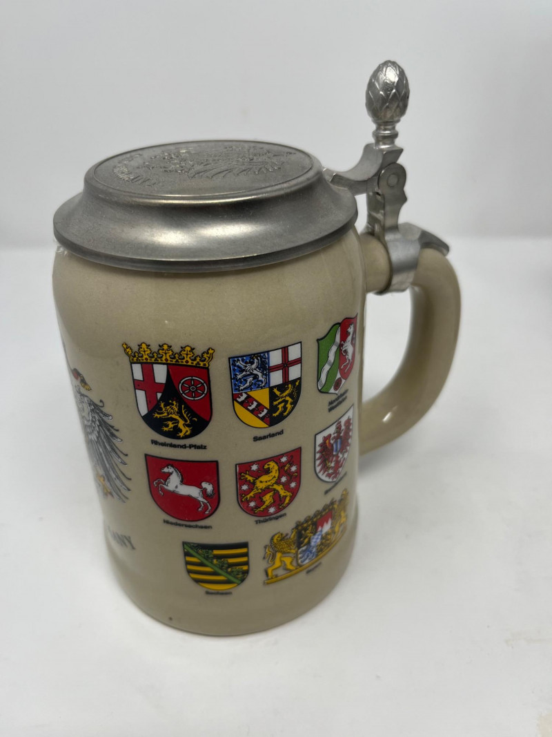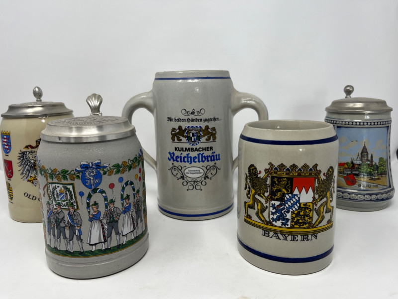 Lot of misc. German beer steins. A great edition to any home bar for enjoying a pint with friends or family. Some come with branding of makers and Germany as the country of origin.