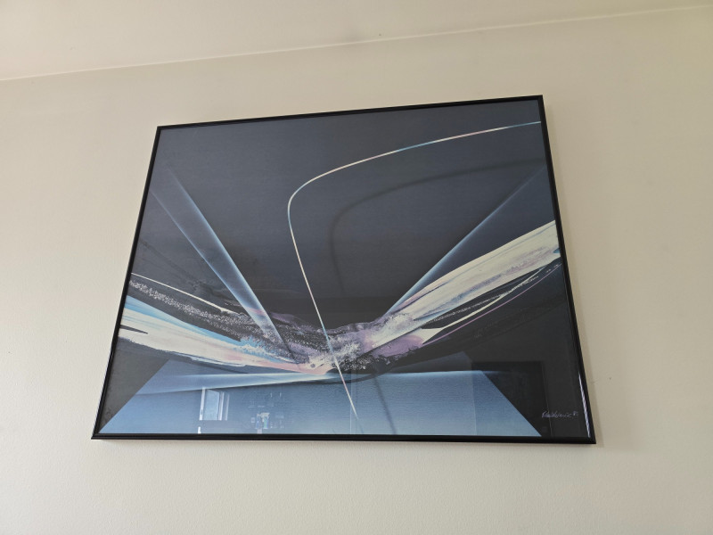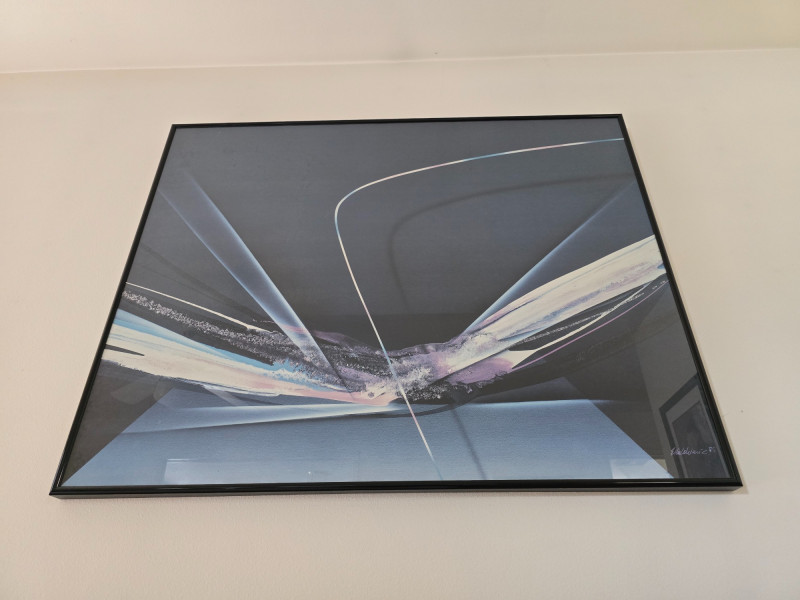 Abstract Serigraph from Venezuelan artist Elba Alvarez- signed and dated -1985 in the bottom corner. Her work often features abstract designs, bold lines, and exploration of form and dimension. Today, her paintings have sold for thousands with even prints fetching several hundred in auction houses. The Venezuelan government has devoted a section of the Gallery de Nacional to permanently display some of her works.