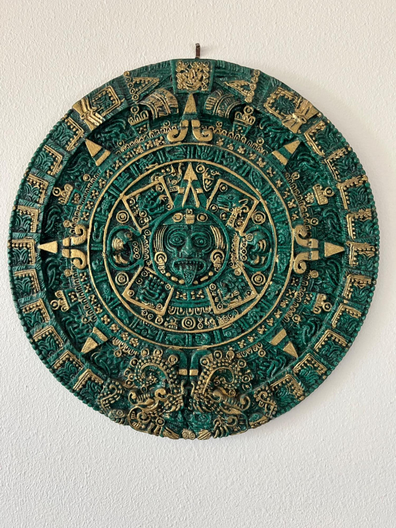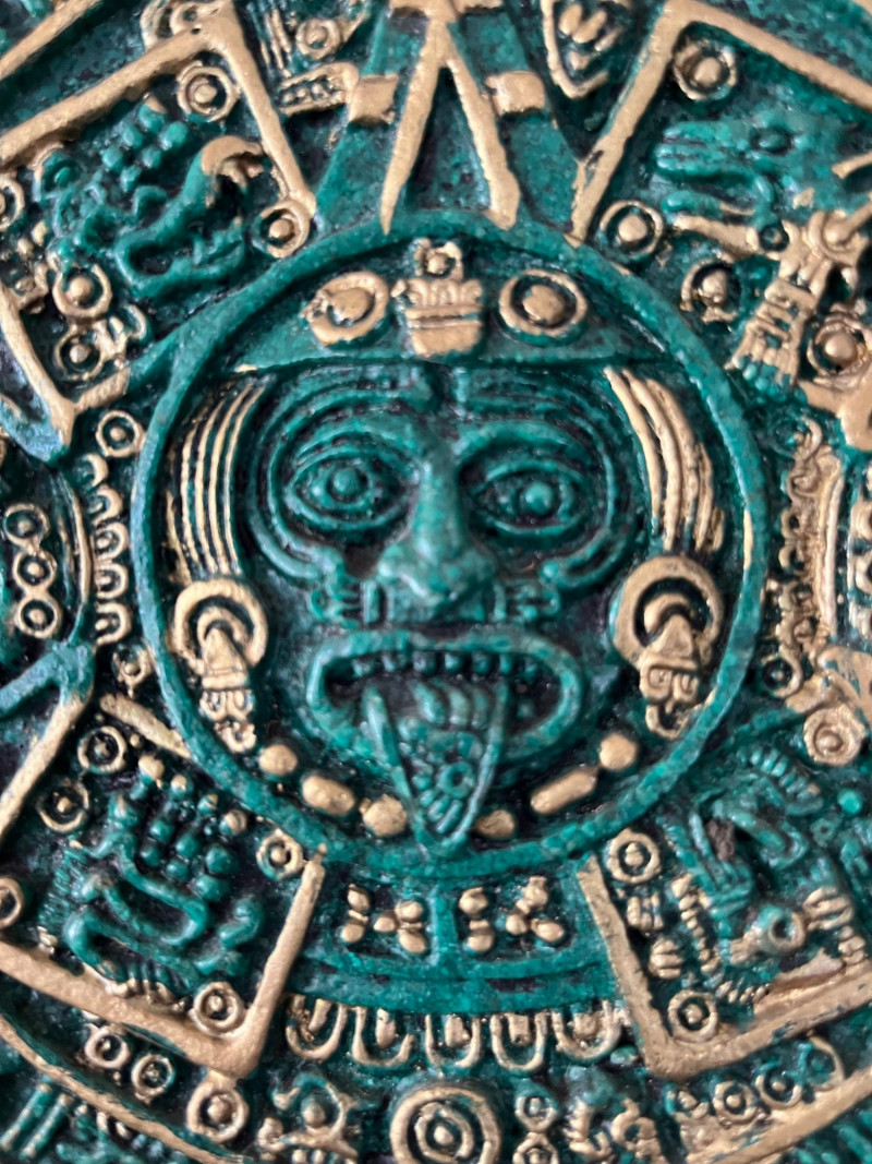 Lot # 98 - Vintage Malachite Aztec Calendar Wall Hanging