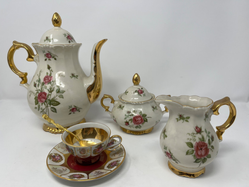 Unbranded single serve tea set. Comes with large teapot, cream pot, sugar jar with lid, and a teacup with matching saucer and accompanying stirring spoon. Great condition, with lovely floral motifs present throughout the pices. Girls just wanna have fun, and sometimes the most fun you can have is with yourself.