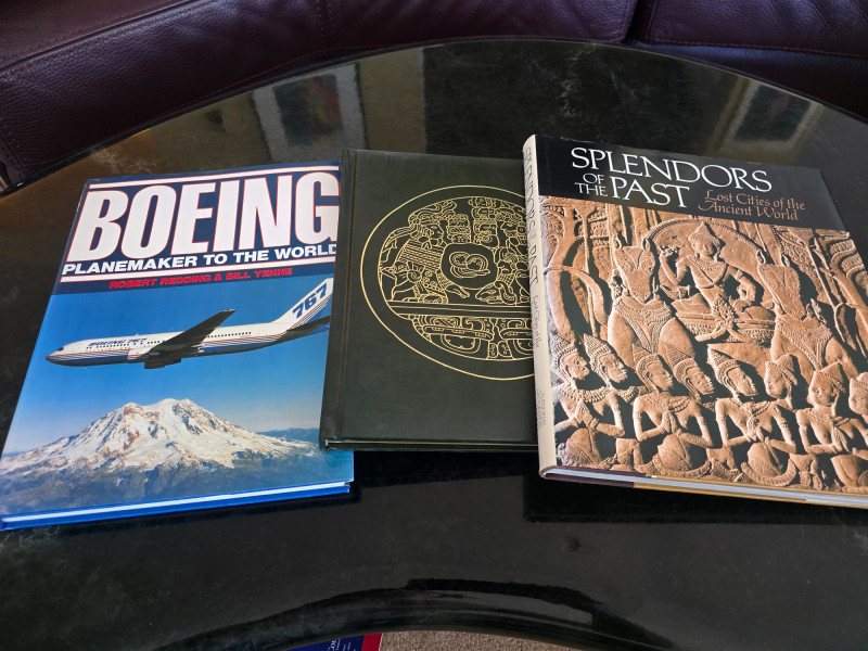 Lot of books on world travel and history. Global travel with an emphasis on Germany. Lot includes a book on Seattle based Boeing company history. History books vary in time period and region.