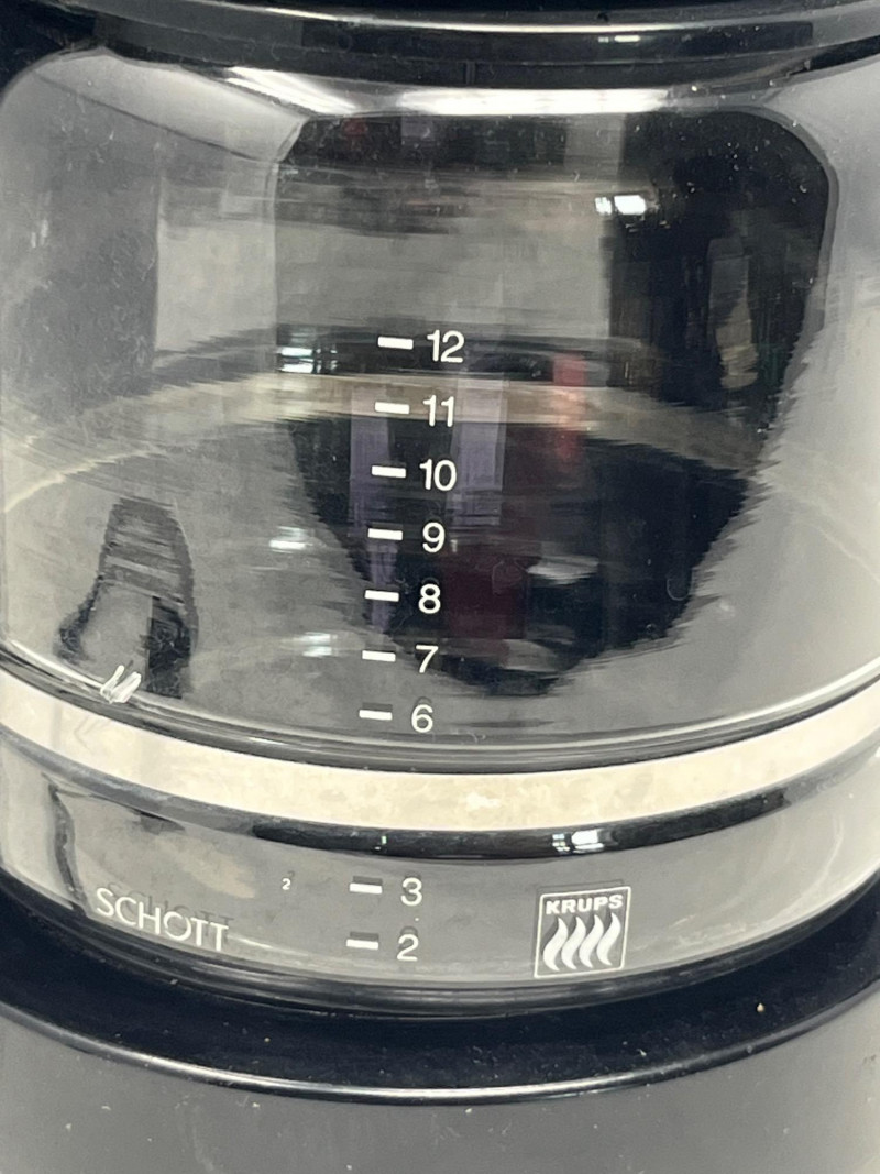 12 cup drip coffee maker from Krups. Has clock and programmable settings for brewing features. Lightweight and easy to take to a new home or send off the kids to college.