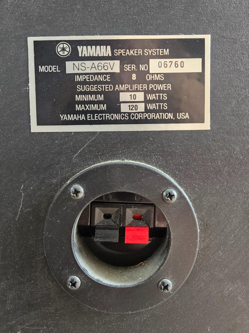 IMPEDANCE 8 OHMS SUGGESTED AMPLIFIER POWER MINIMUM 10 WATTS MAXIMUM 120 WATTS YAMAHA ELECTRONICS CORPORATION, USA speakers may need refurbishment.