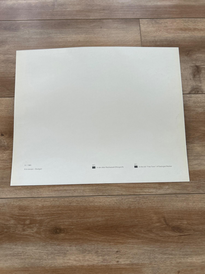 Original Vintage Prints – Stuttgart Issued A rare surviving set of factory-issued calendar inserts from Porsche’s 1965 promotional calendar—an elegant fusion of mid-century design and motorsport prestige. These inserts were distributed by Porsche AG in Stuttgart, intended for display in dealerships and enthusiast offices. Includes original monthly artwork inserts (quantity and condition TBD) Features period-correct photography and graphic design, showcasing Porsche’s racing and production highlights Printed on high-quality stock, suitable for framing or archival display A must-have for Porsche historians, vintage advertising collectors, and anyone curating the visual legacy of the brand’s golden era.