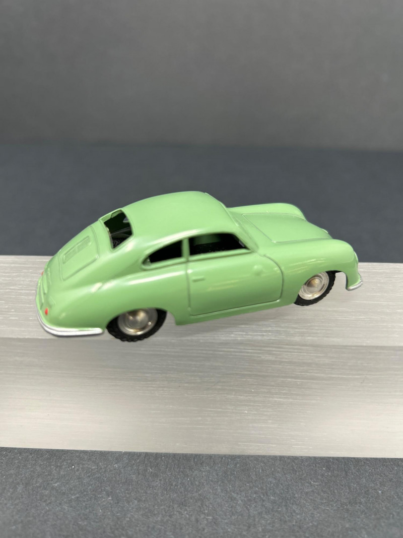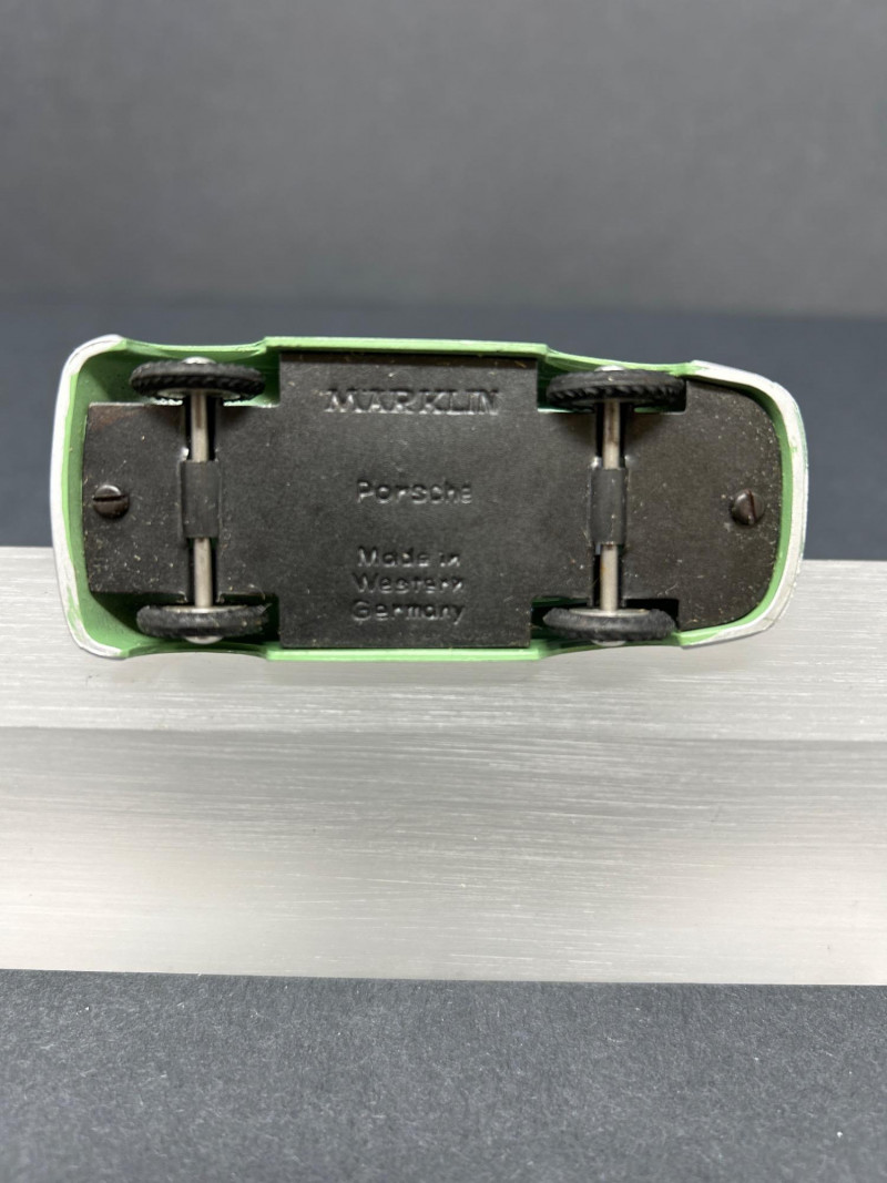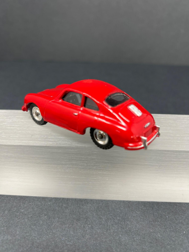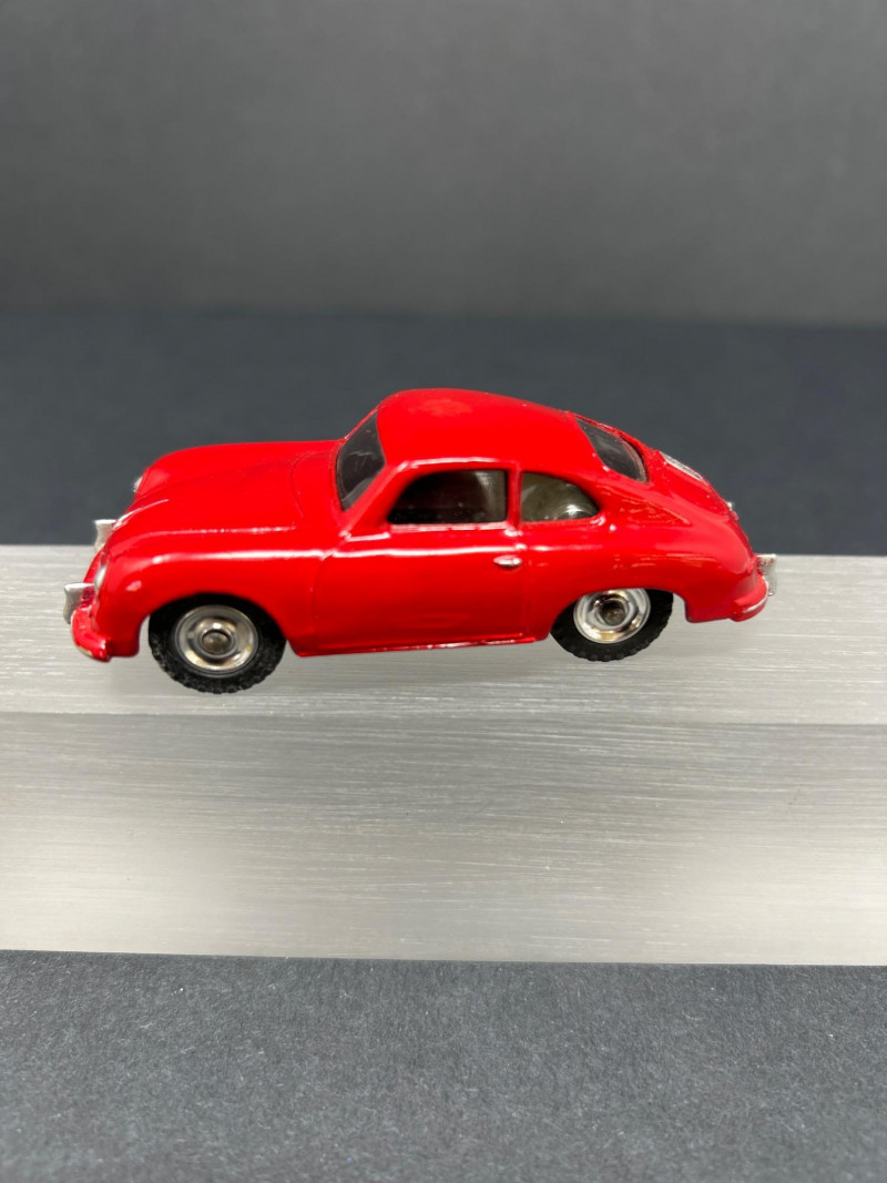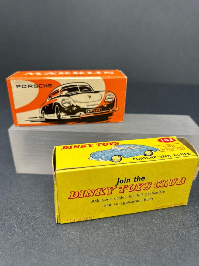 Märklin • Dinky Toys • Plexi-Case Novelty A playful trio of mid-century Porsche collectibles, blending precision casting with nostalgic charm: Märklin Red Porsche 8004 – Made in Germany, this die-cast model boasts crisp detailing and classic Märklin weight. A standout for European toy collectors. Dinky Toys Green Porsche 356A (No. 182) – Produced in England, this mint green coupe captures the sleek silhouette of Porsche’s early post-war icon. Includes original illustrated box. Vintage Porsche Eraser in Yellow Plexi Case – A novelty piece with retro flair, molded in rubber and housed in a transparent display shell. From showroom replicas to desk-side whimsy, this lot offers a cross-section of Porsche’s miniature legacy—ideal for die-cast devotees and vintage curators alike.