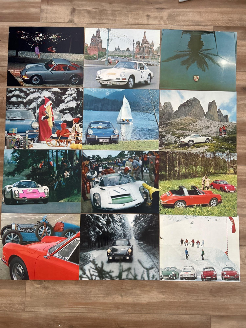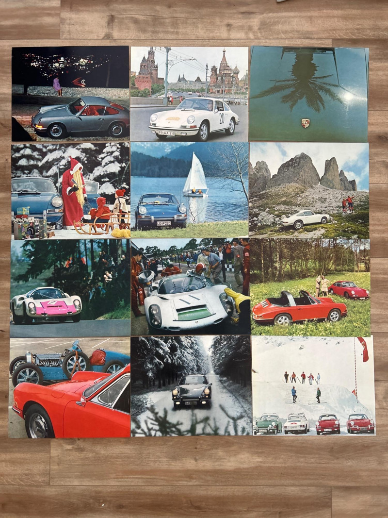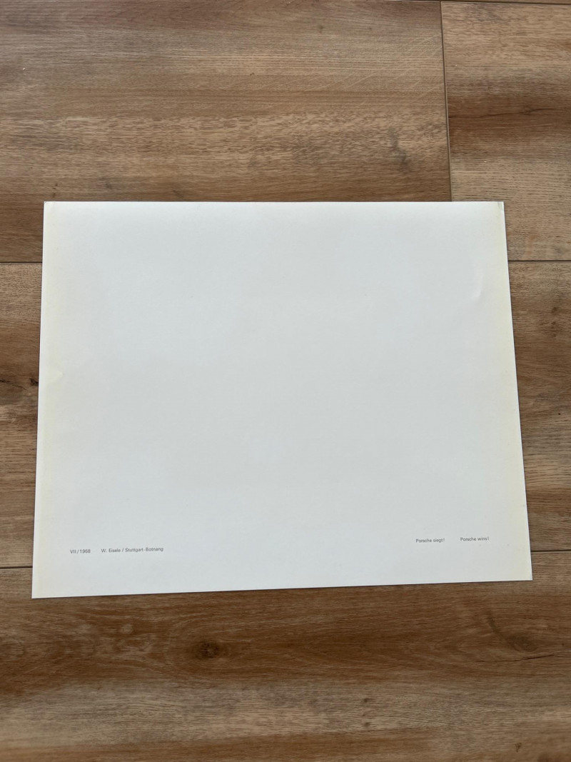 Original Promotional Artwork – Stuttgart Issued A rare set of factory-issued calendar inserts from Porsche’s 1968 promotional calendar, showcasing the brand’s design-forward ethos and motorsport prestige during a pivotal era. Includes original monthly artwork inserts Features period-correct photography and graphic design, likely highlighting Porsche’s racing and production achievements Printed on high-quality stock, suitable for framing, archival display, or dealership memorabilia collections These inserts were originally distributed by Porsche AG in Stuttgart, intended for showroom and enthusiast display. A must-have for Porsche historians, vintage advertising collectors, and anyone curating the visual legacy of the brand’s golden age. 14.75 x 12.75