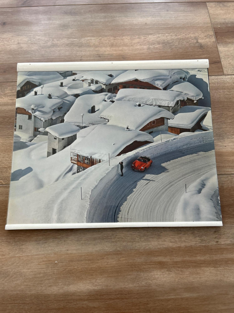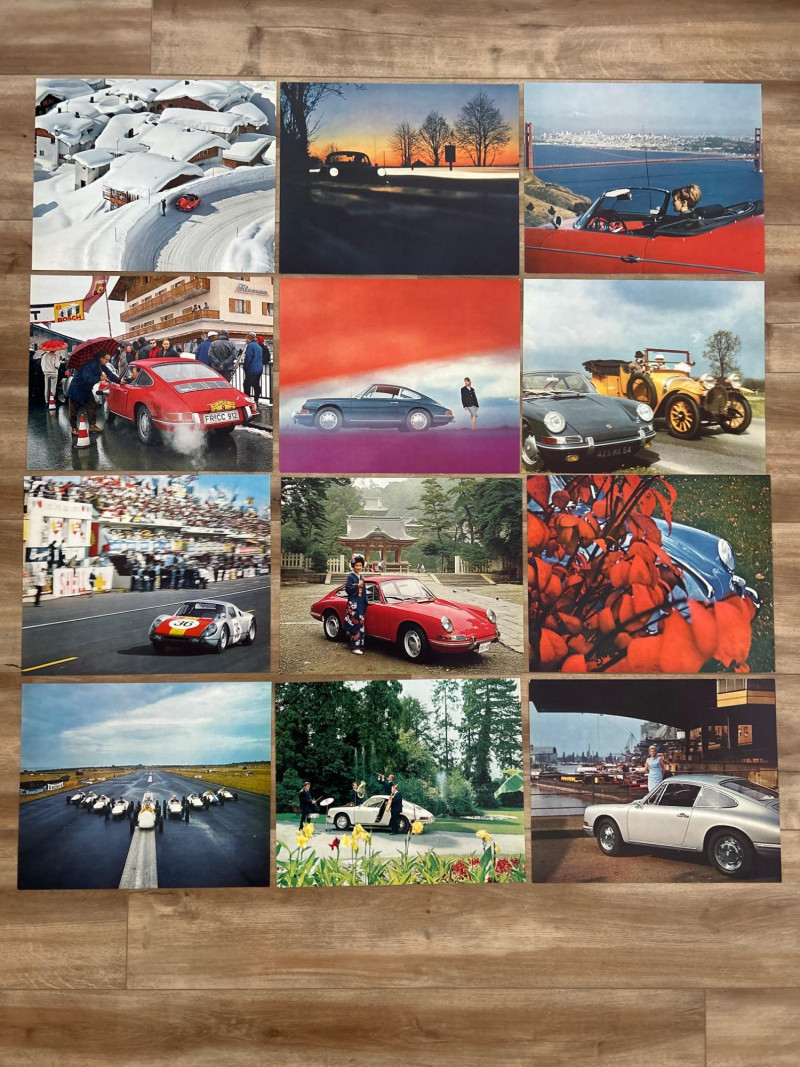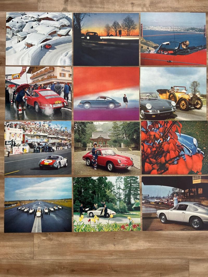Factory Origins: Porsche began producing annual calendars in 1954, often pairing them with collectible coins starting in 1962. These calendars weren’t just promotional—they were artistic showcases of Porsche’s evolving design language and lifestyle branding. 1966 Edition: The inserts from this year typically featured the Porsche 911 and 912 models, which were fresh off the production line and redefining sports car aesthetics. The imagery leaned into aspirational scenes—coastal drives, alpine retreats, racing moments—designed to evoke emotion and elevate the brand. Art & Photography: Each insert was a standalone composition, often created by renowned photographers or studio artists. The saturated colors, cinematic framing, and lifestyle vignettes were meant to position Porsche not just as a car, but as a cultural icon. Collector Value: These inserts are highly sought after by Porsche enthusiasts and vintage print collectors. Complete sets from 1966 are especially desirable due to the prominence of the 911/912 models and the artistic quality of that year’s production. Calendar Coin Tie-In: Some editions included a commemorative coin, which has become a collectible in its own right. While your lot doesn’t include the coin, the inserts themselves are part of that same collectible ecosystemHistorical Context & Collector Appeal