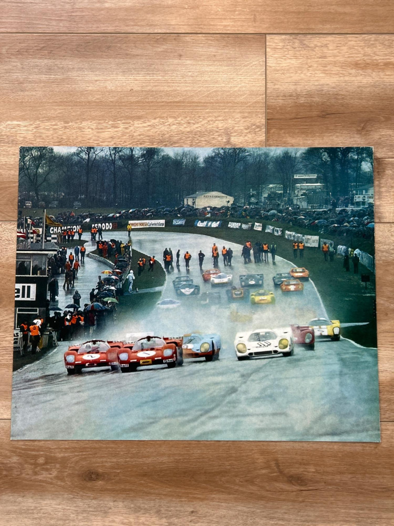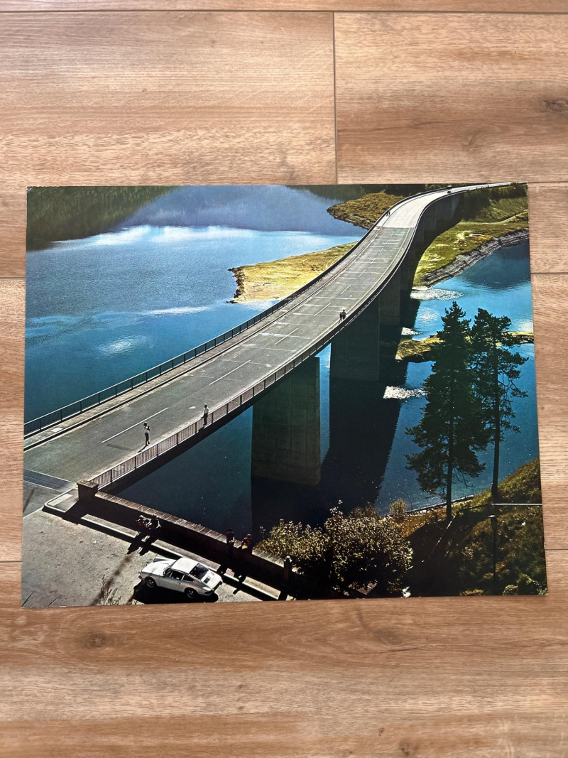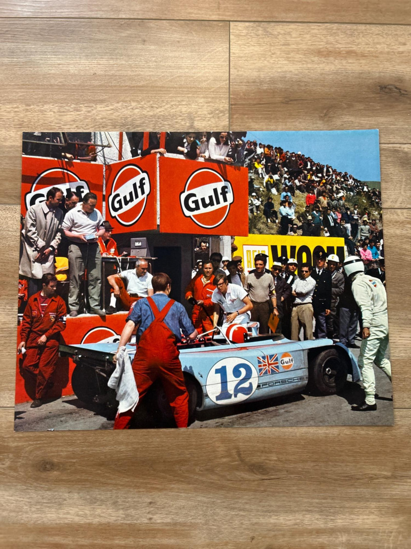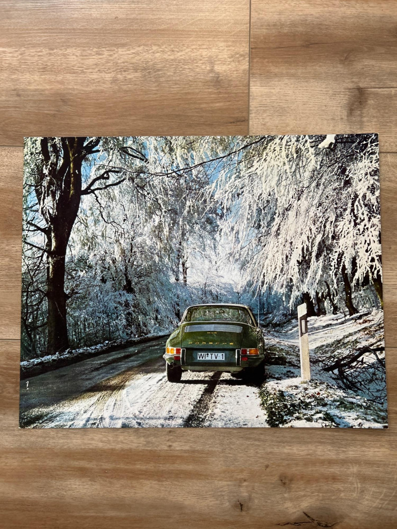 This complete set of 1971 Porsche calendar inserts captures the brand’s golden era in bold, oversized prints. Each image (approx. 18" × 14.5") showcases a different scene—racing drama, scenic drives, and lifestyle vignettes—designed to celebrate Porsche’s design legacy and cultural impact. Includes: 12 original calendar inserts, each with a distinct vintage photograph Year: 1971 Subjects: Porsche 911 and 914 models in aspirational, event-based, and scenic settings Style: Richly saturated, cinematic compositions with strong collector appeal Dimensions: Approx. 18" W × 14.5" H each Condition: Vintage wear consistent with age; sold as-is Background: Part of Porsche’s iconic annual calendar series, the 1971 edition reflects the brand’s shift toward modernism and motorsport prestige. These inserts were produced in limited runs and are prized for their photographic quality and historical relevance.