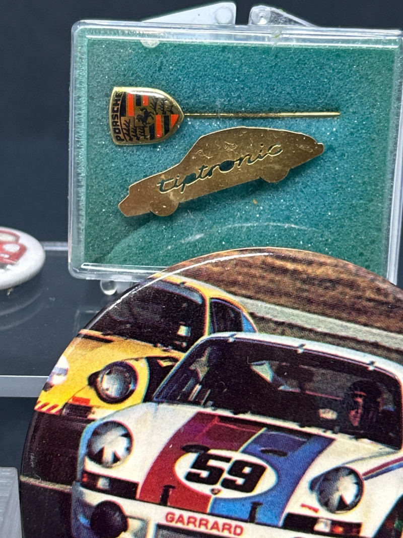 Lot # 30 - Vintage Racing Buttons, Patches & Pins — Dan Gurney, Phil Hill, Penske