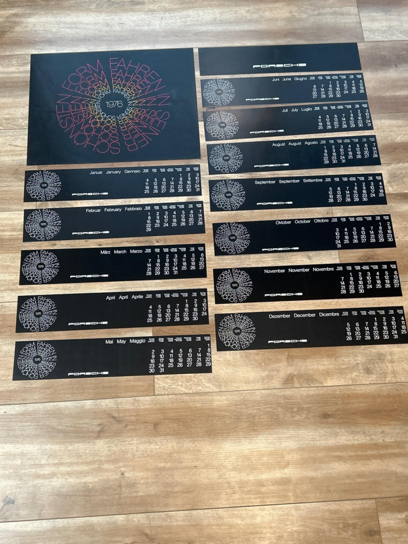 Printed on glossy calendar stock, unframed. Includes 12 photo inserts and 12 separate month cards, all in clean condition. Originally issued as a promotional calendar, likely distributed through Porsche dealerships or enthusiast clubs.