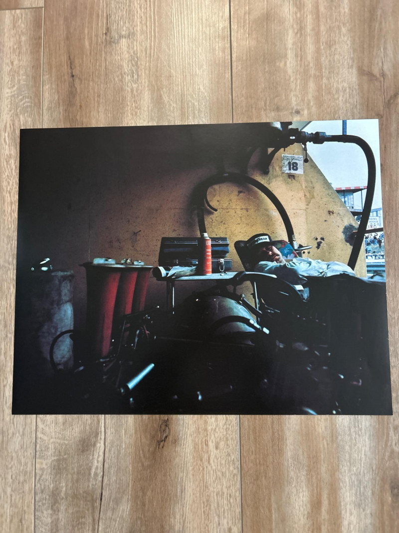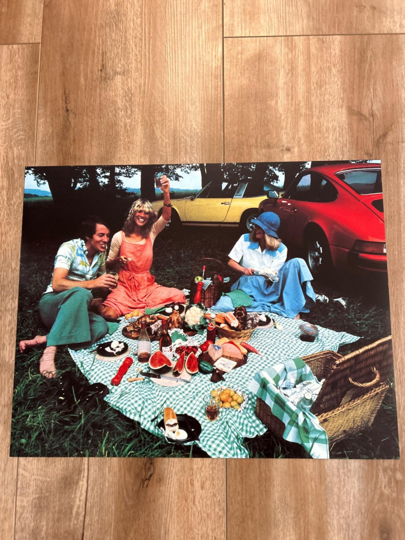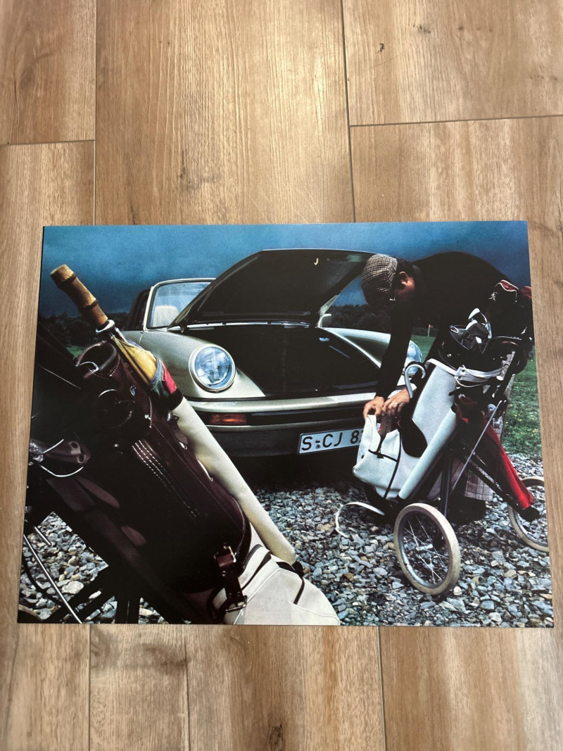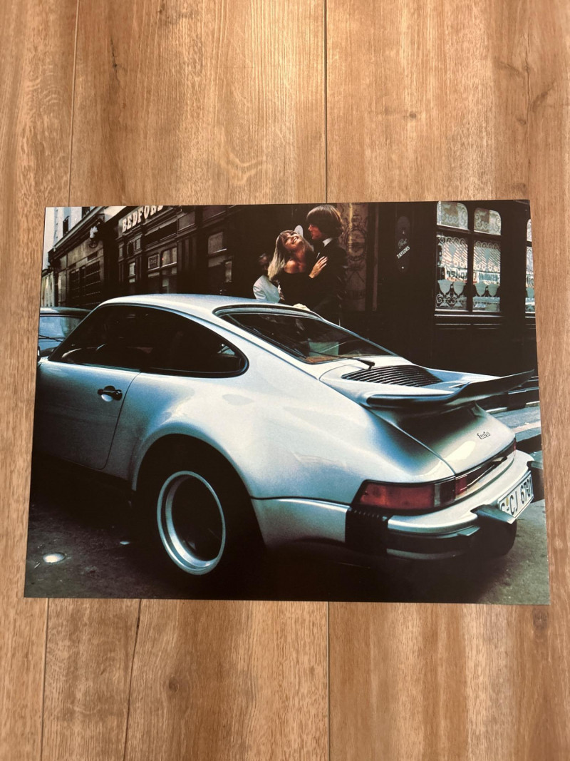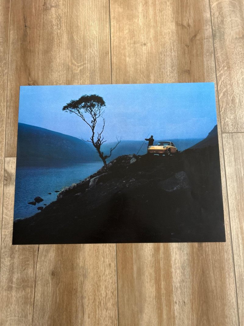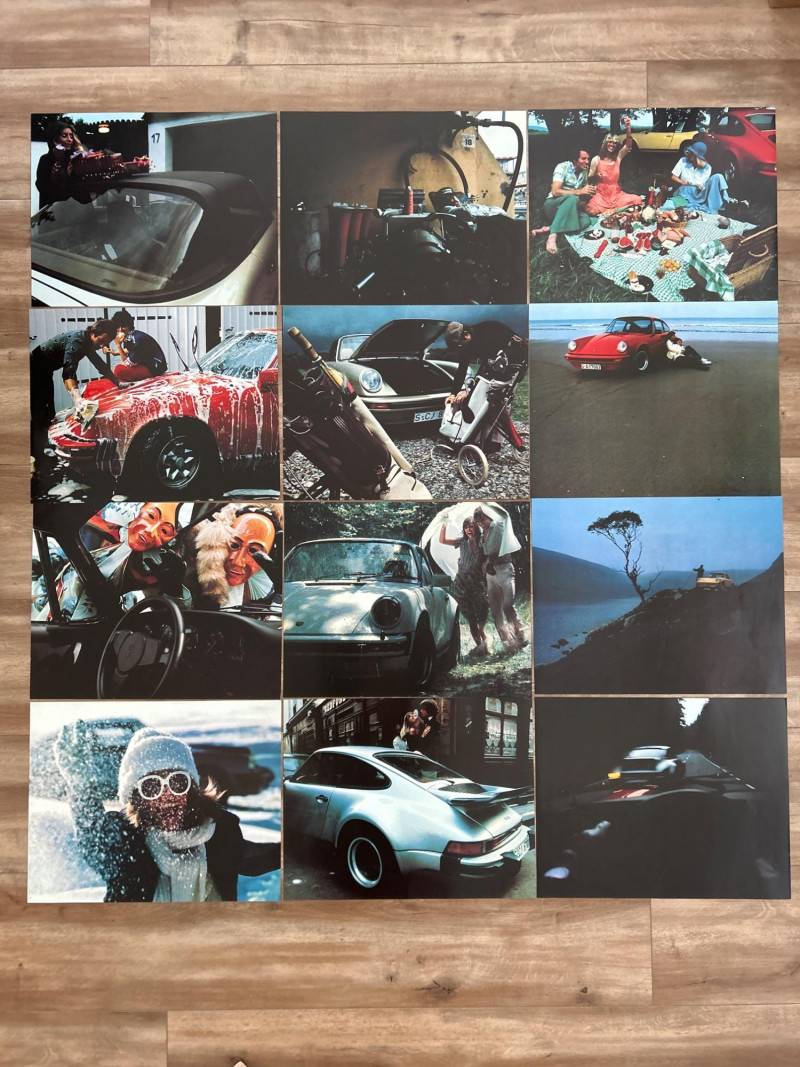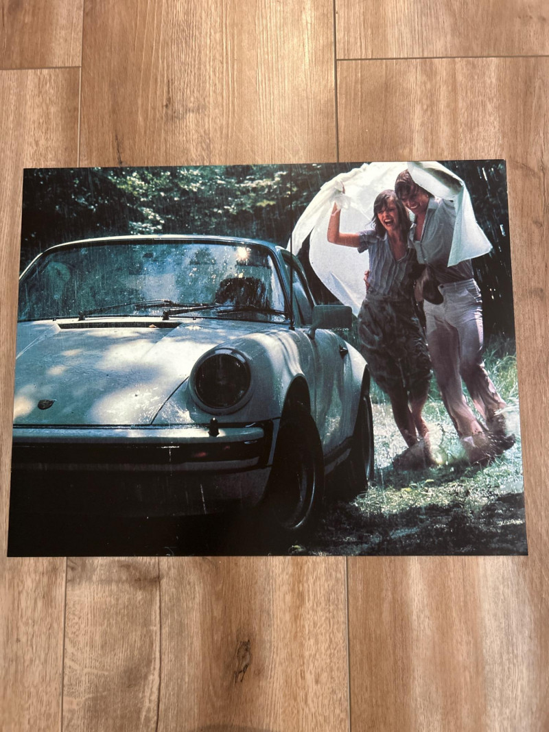 This complete set of 12 unframed calendar photo inserts from 1976 captures the Porsche lifestyle in its most candid and playful form. Each 13.5" x 17" print features a different scene involving classic Porsche models—primarily the 911—woven into everyday moments, road trips, and quirky vignettes. The set includes the original month cards, preserving the full calendar format and enhancing its archival appeal. Medium & Format