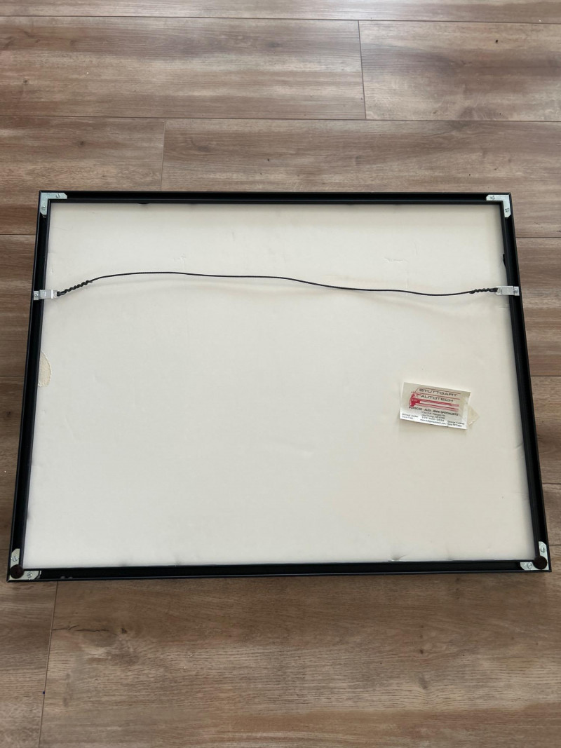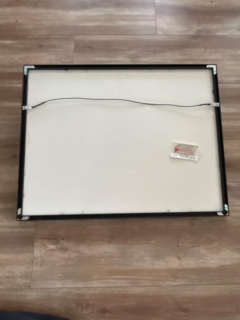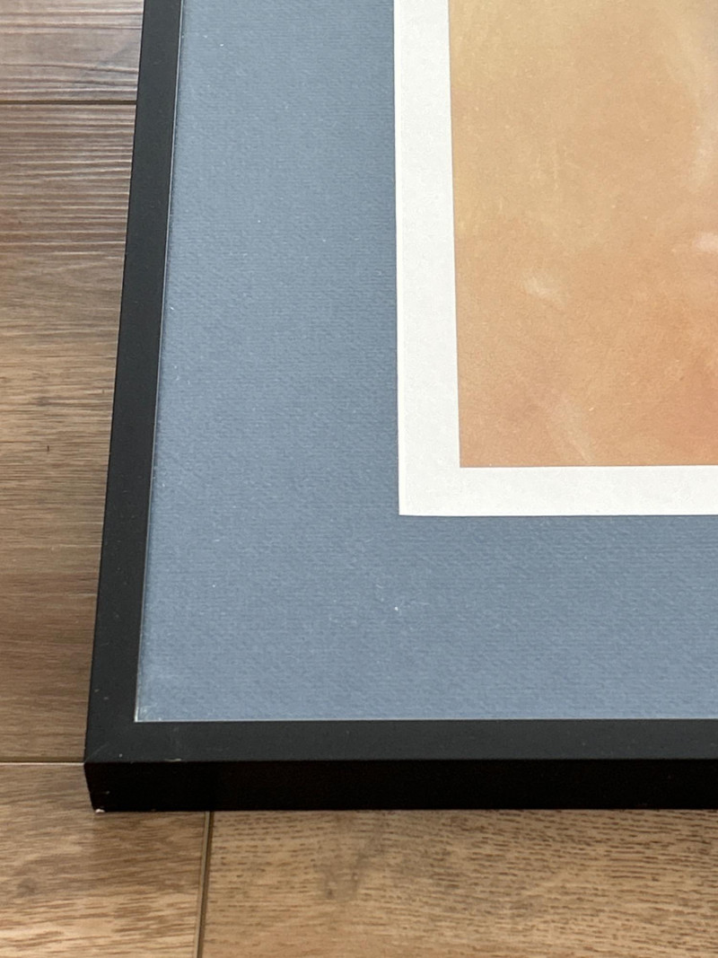 Framed print, measuring 26" L x 20" W. Mounted under glass with a blue matte and black frame. Artist and edition details not specified, but the piece presents as professionally produced and ready for wall display.