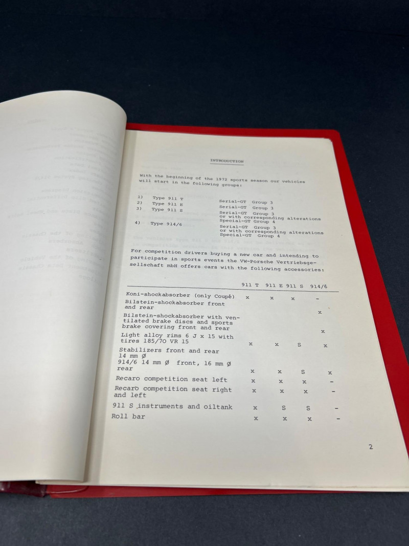 • Factory binder: Information Regarding Porsche Vehicles Used for Sports Purposes (911 S / 914/6)