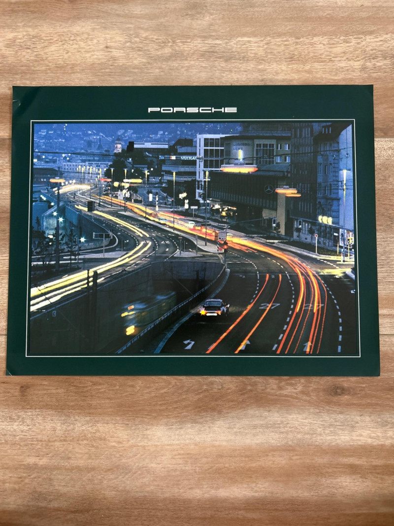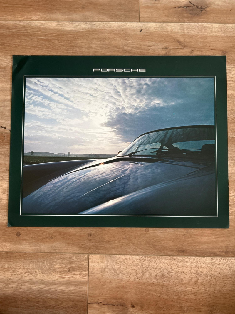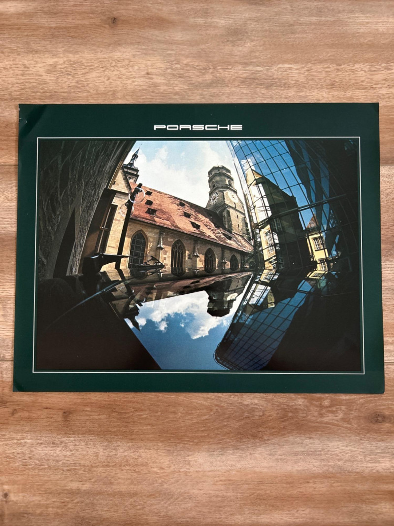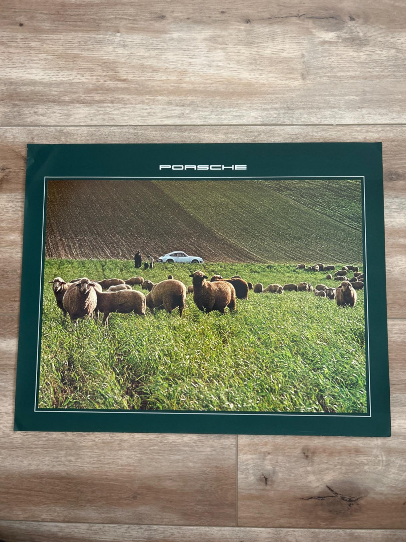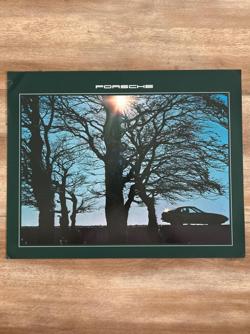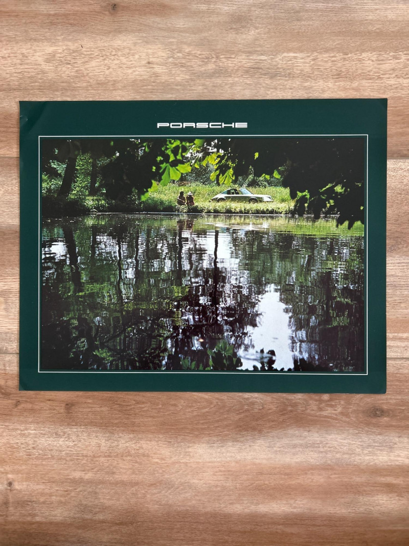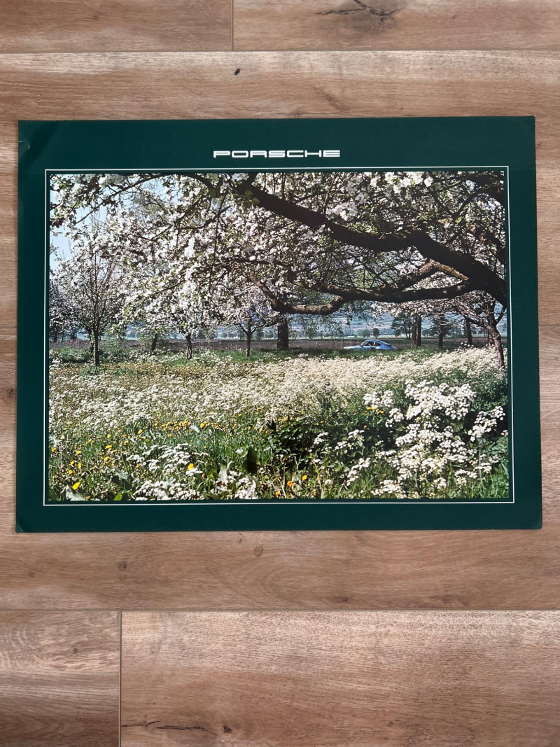 A visually engaging set of 18" x 14.5" calendar inserts from Porsche’s 1979 promotional series, blending automotive imagery with environmental and infrastructural themes. Photographic Range: Includes 12 vivid prints featuring Porsche vehicles in diverse settings—foggy roads, snowy forests, urban tunnels, and scenic landscapes. Environmental Contexts: Cows in pasture, boats on water, bare trees, and rocky terrain suggest a broader narrative of motion through nature and infrastructure. Supplemental Pages: Includes black-and-white index sheet and two black pages with white tabulated data—likely technical specs or thematic notes. Collector’s Note: A rare and eclectic Porsche calendar set with educational flair—ideal for framing, studio inspiration, or collectors of automotive ephemera with a conceptual twist.