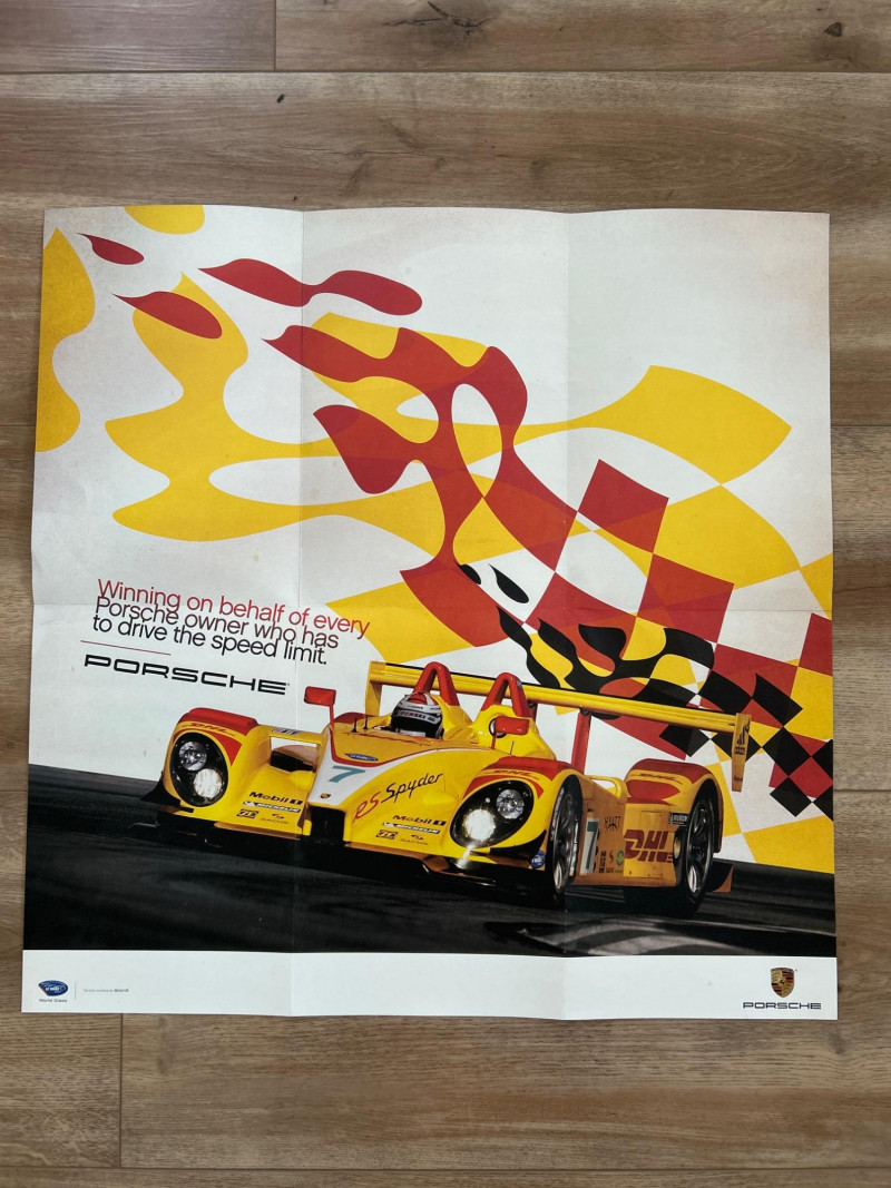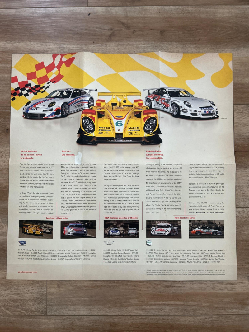 Includes: Alan Johnson Racing Inc. – Porsche brochure : A minimalist black-and-red stunner, emblematic of 1980s racing grit. Pirelli P6 Tire Promo: High-performance bravado meets slick studio photography—because tires deserve glamour too. Concours d’Elegance, Pebble Beach 1994 (x3 variants): Three distinct designs from the same legendary event, each a tribute to elegance on wheels. 911: Forty Fast Years (1963–2003): A monochrome homage to Porsche’s enduring icon, perfect for the purist. Rennsport Reunion II (2011): Rennsport IV (4) in 2011. A colorful collage of Porsche’s racing lineage—like a pit lane parade in print. 2006 World Champion Poster: Yellow, bold, and unapologetically victorious. Porsche makes the difference, and this poster proves it.