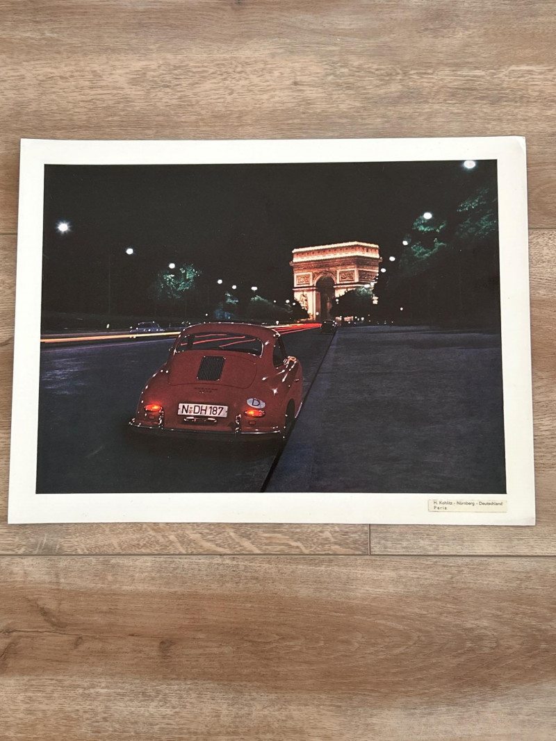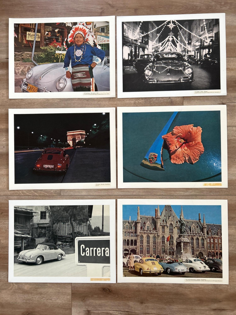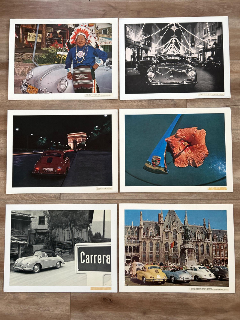 Step into the golden age of automotive design with this rare collection of six original calendar inserts from 1962, each featuring stunning imagery of the legendary Porsche 356 models. These mid-century pieces capture the elegance and innovation of Porsche’s early years, showcasing sleek lines, classic typography, and timeless styling. Dimensions: Each insert measures 14.5" wide × 11" tall — perfect for framing or archival display. Design: includes a mix of Porsche 356 variants, rendered in period-authentic photography and layout. Era: A visual tribute to early 1960s automotive culture and Porsche’s design legacy.