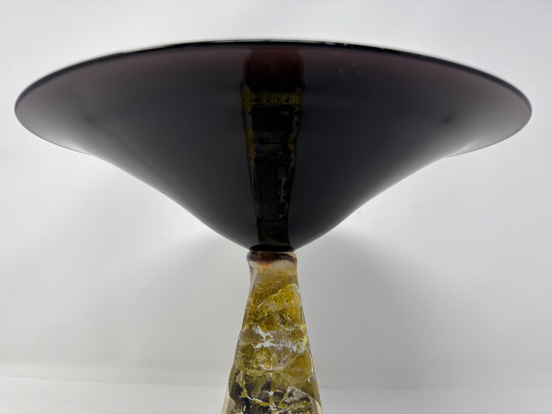 Lot # 2 - Willsea O’Brien Studio Pedestal Bowl - Purple and Gold Leaf Pyramid