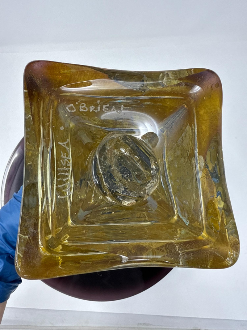 Style Notes: Hollywood Regency meets modernist sculpture. Collector Insight: Willsea O’Brien’s work is prized for its bold forms and studio craftsmanship. This piece is ideal for display in minimalist, glam, or eclectic interiors—whether as a centerpiece, console accent, or part of a curated glass collection.