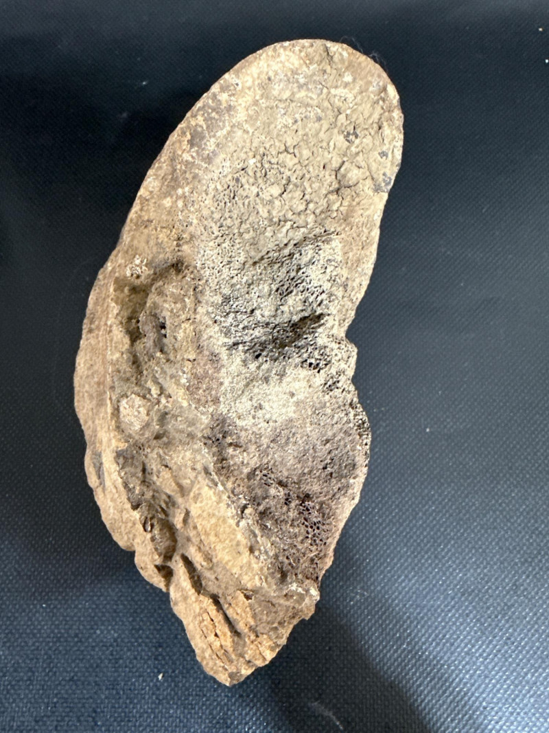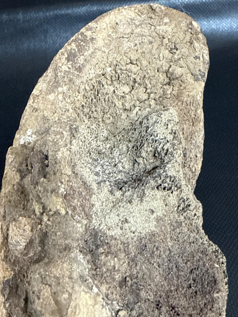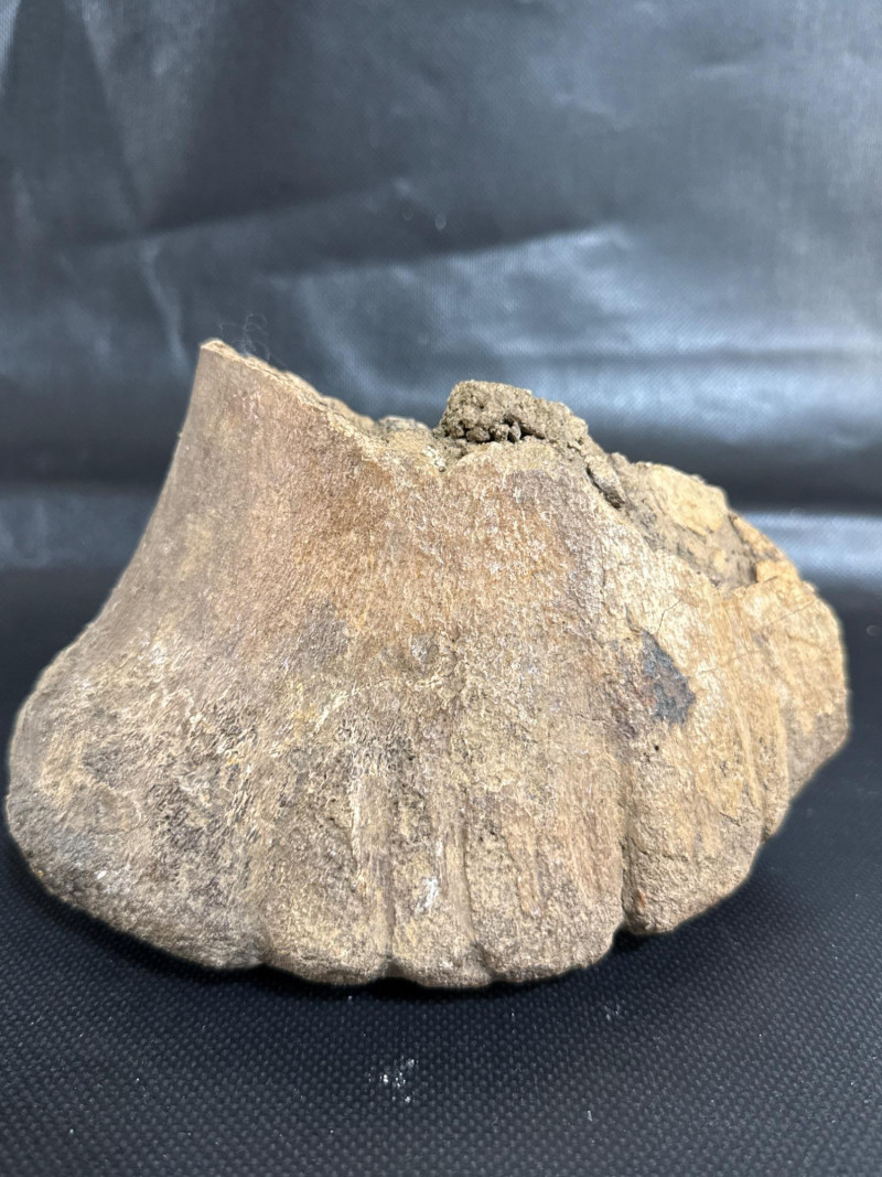 A rugged, richly textured fragment of a Triceratops leg bone, this fossilized piece offers a tactile connection to the Cretaceous giants that once roamed North America. With deep ridges and natural indentations, the surface reveals the slow artistry of time—mineralization, erosion, and preservation converging in a sculptural relic. Likely part of the femur or tibia, this segment carries the weight of ancient locomotion and evolutionary grandeur. Dimensions: Approx. 8" L × 3.5" W × 5.5" H Material: Fossilized bone (Triceratops, Late Cretaceous) Condition: Naturally weathered; surface ridges and mineral deposits intactDescription