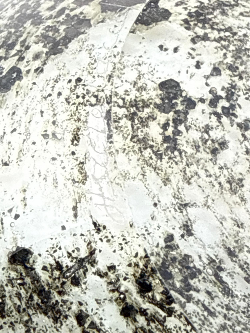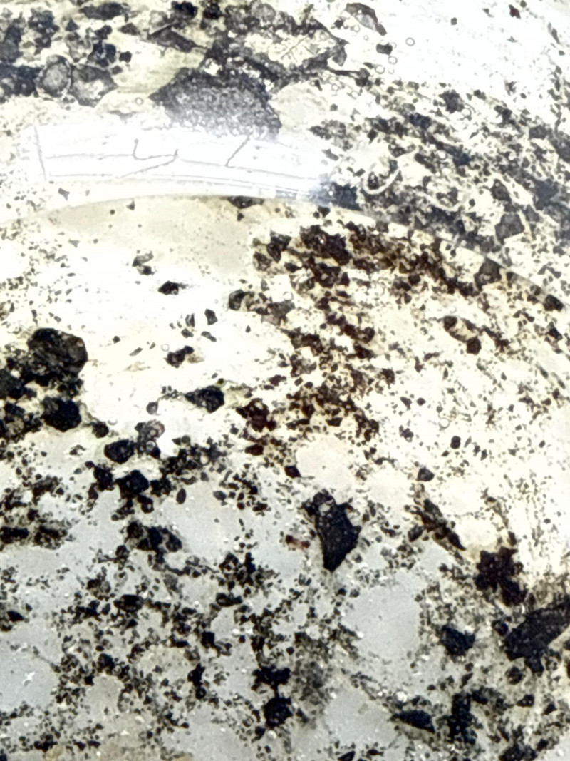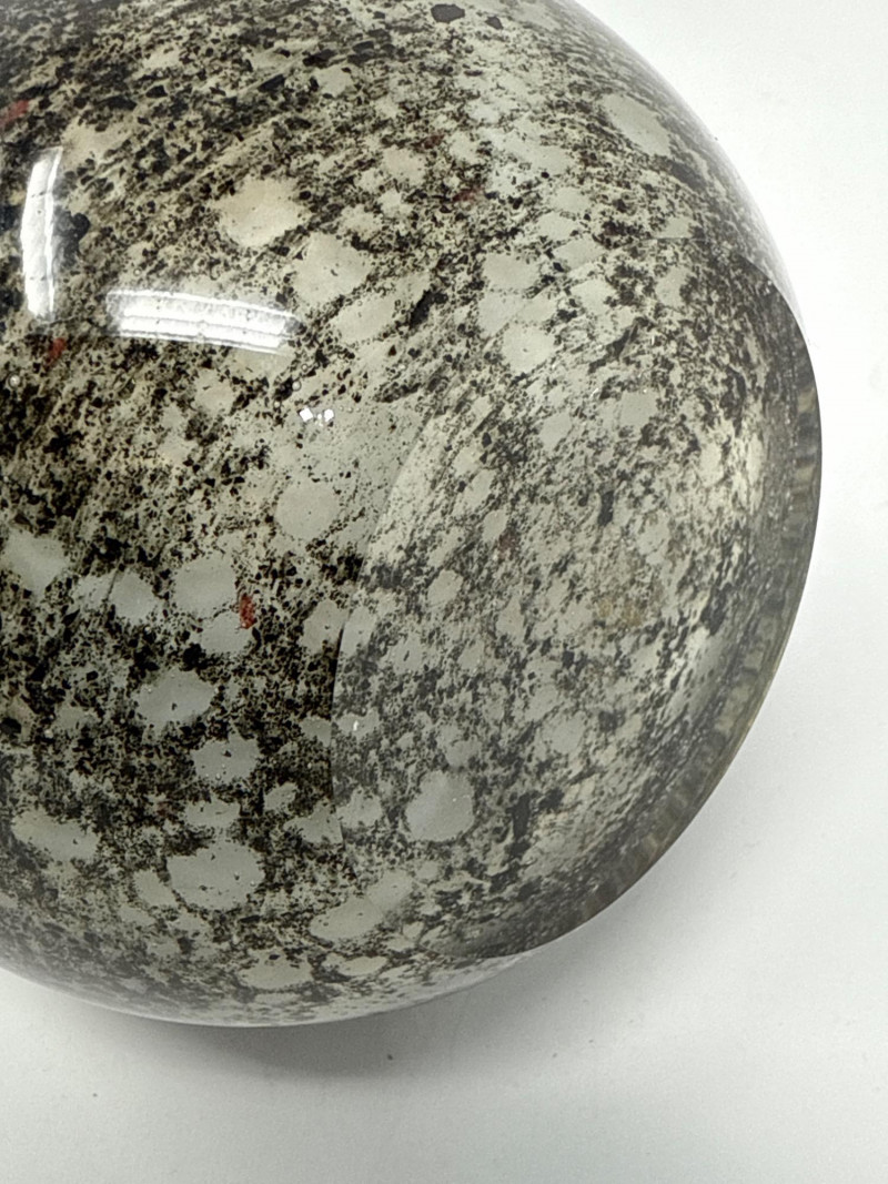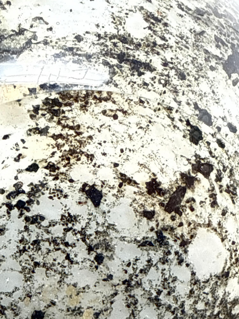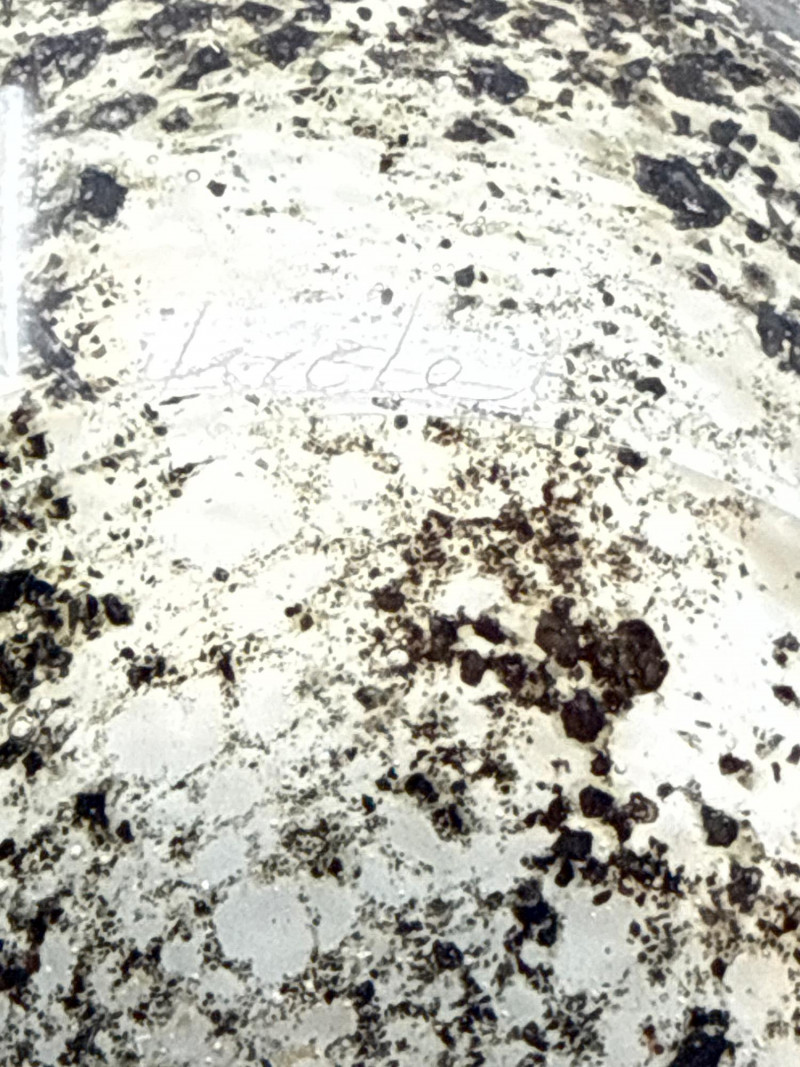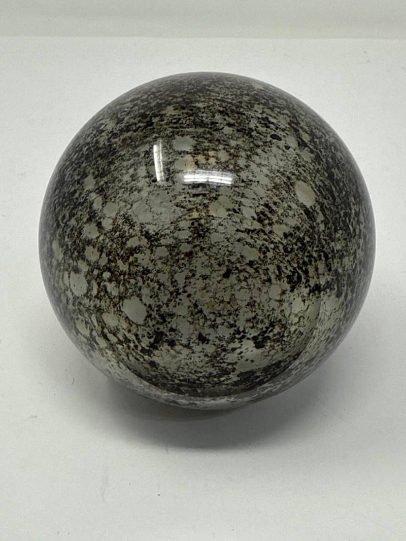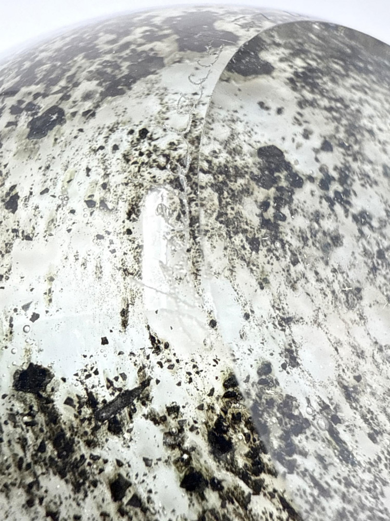 A decorative vase crafted in contrasting black and clear glass, enhanced by an evenly speckled surface pattern that lends depth and visual interest. The piece bears a signature, underscoring its authenticity and collector appeal. Width: 4 in (approx. 10.2 cm) Height: 5 in (approx. 12.7 cm) Signature: Yes (etched/engraved) Material: Hand‑blown art glass Color: Black with clear sections Design Feature: Deliberate speckled effect within the clear glass, enhancing texture and light play Influence: Mid‑Century Modern / Studio Glass tradition Era: Likely mid to late 20th century (confirmation strengthens provenance) Condition: Excellent – no chips, cracks, or repairs noted Finish: Smooth polished pontil; uniform form and symmetry Speckled art glass offers unique optical depth and texture prized by collectors. The signed base, contrasting tones, and intentional patterning make this vase an eye‑catching addition to a curated glass collection or modern interior.Dimensions: