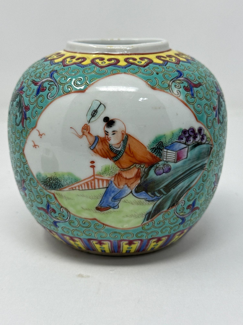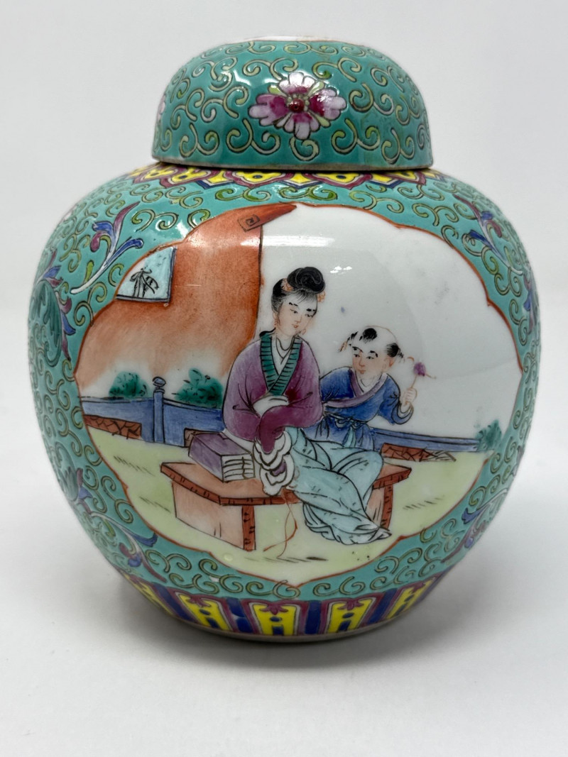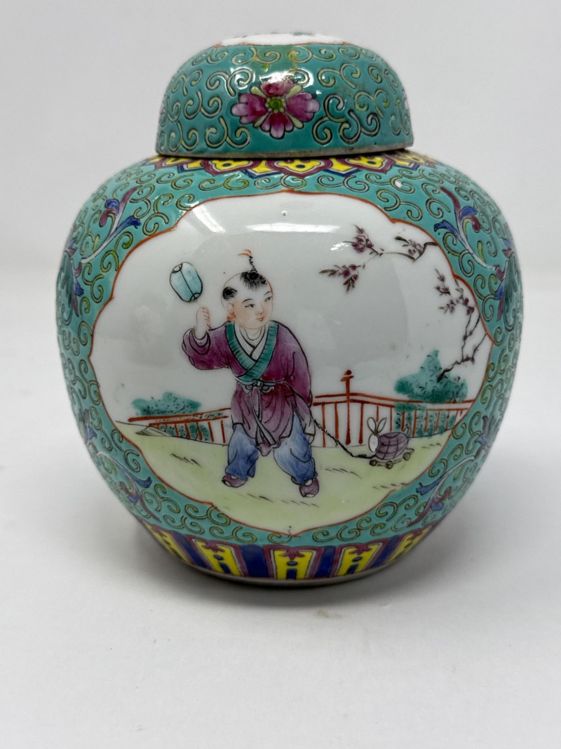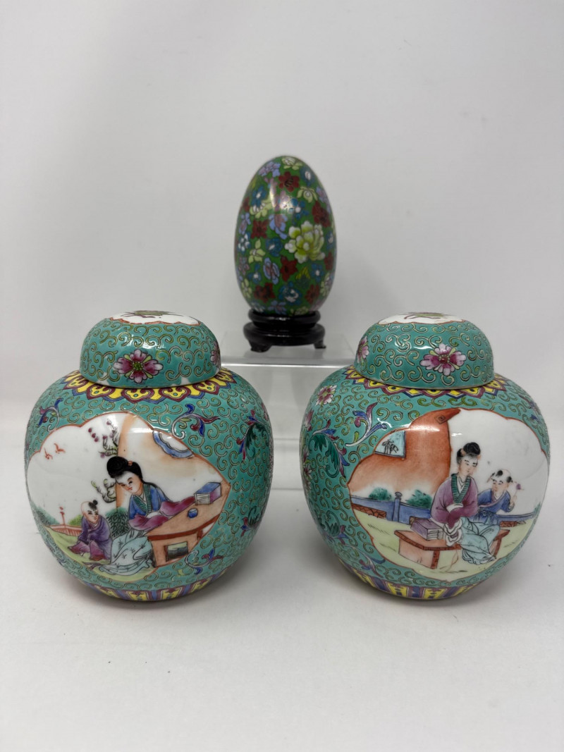 Lot # 18 - Chinese Famille Rose Porcelain Ginger Jars with Cloisonné Enamel Egg