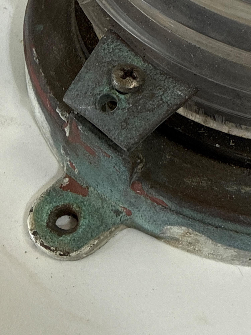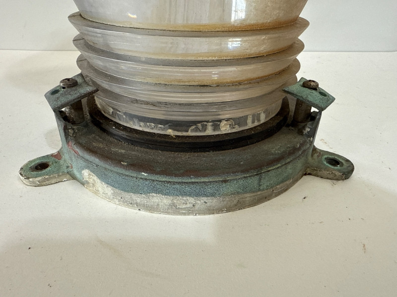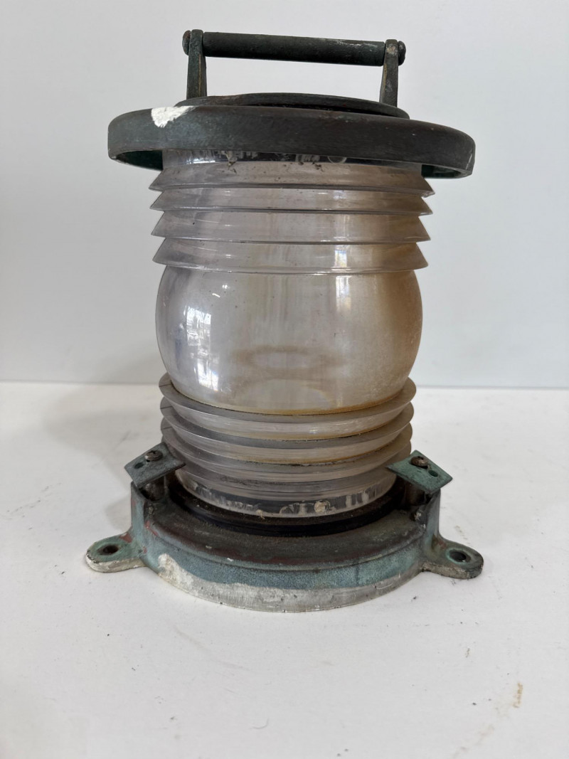 A gleaming relic of maritime vigilance, this vintage Perko masthead light once crowned a vessel under the watchful eye of the United States Coast Guard. With its stout 10.2-inch height and symmetrical 8-inch base, it evokes the era when brass and glass bore the burden of safe passage. Whether you're a nautical purist or a collector of industrial elegance, this piece offers both provenance and presence. Dimensions: 8" L × 8" W × 10.2" H