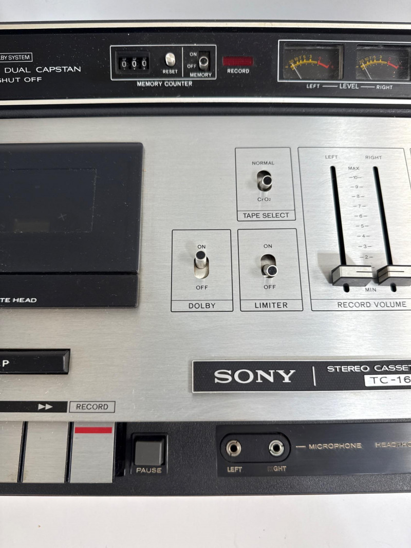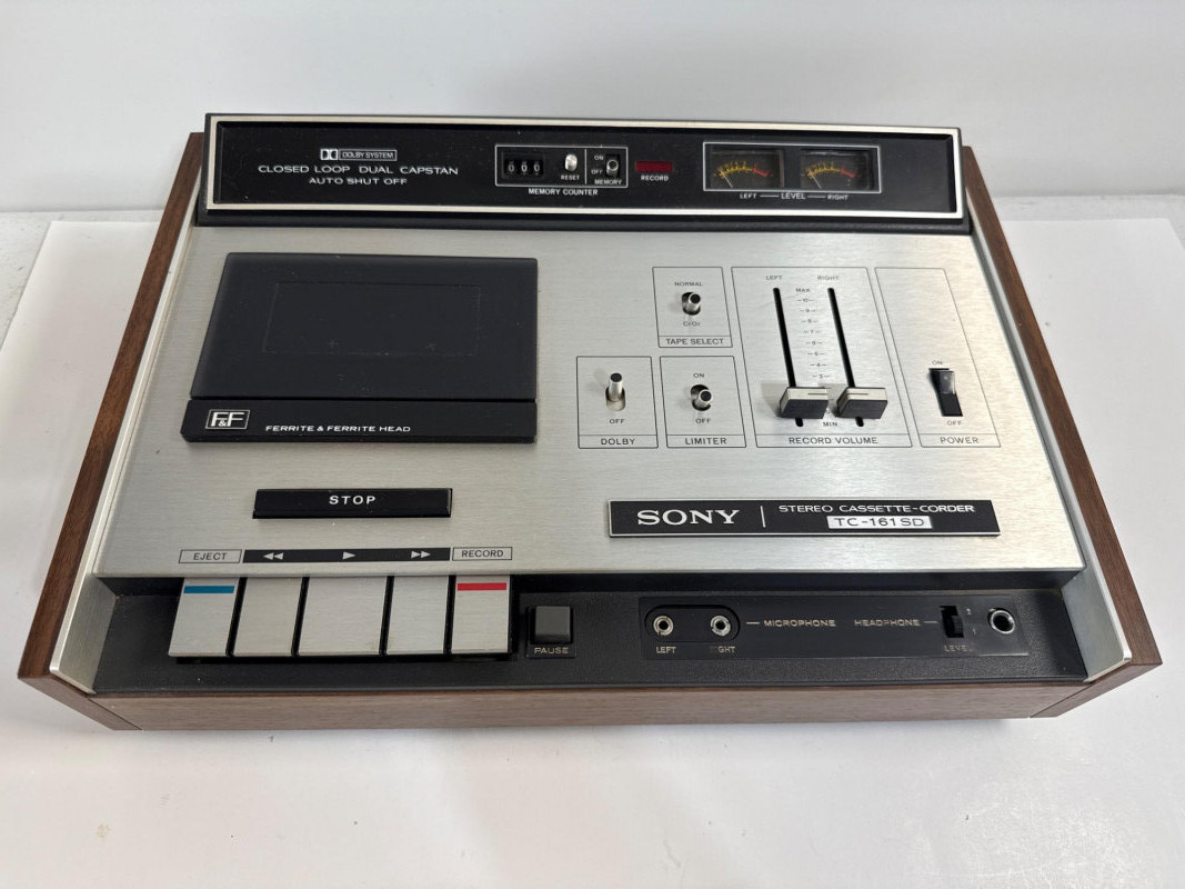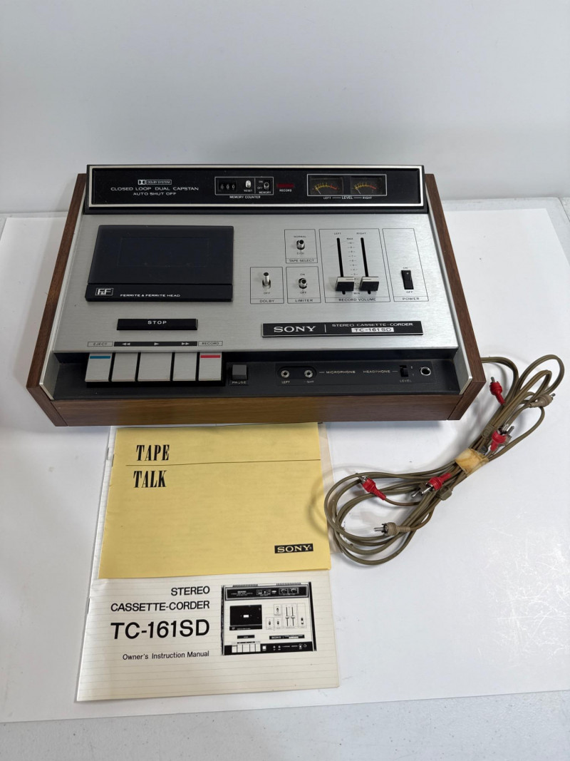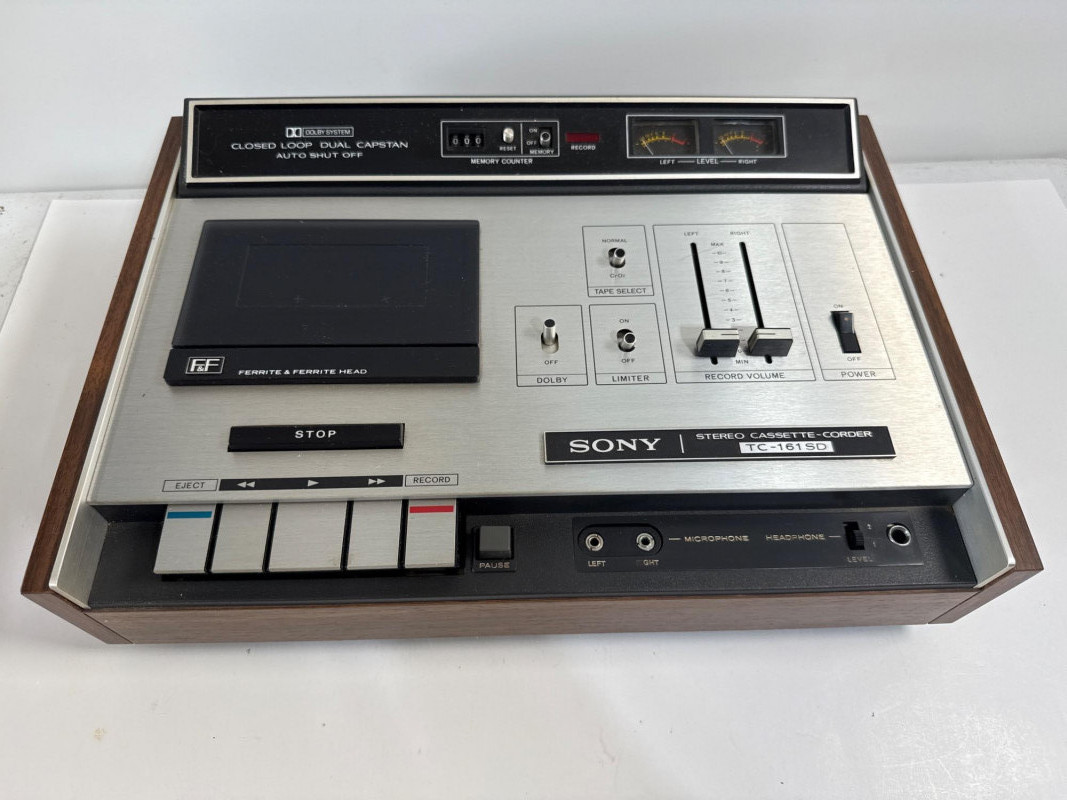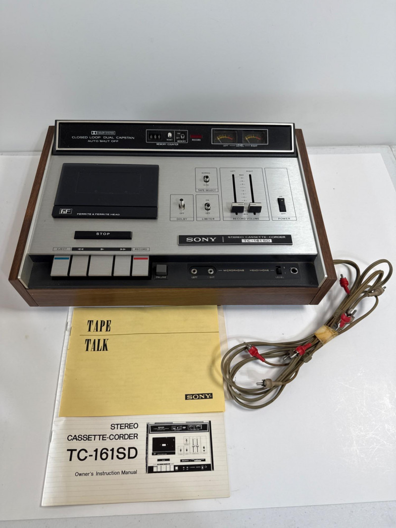 A classic piece of analog audio engineering from Sony, this vintage TC-161SD stereo cassette-Corder offers both collectible charm and functional nostalgia. Designed during the golden age of cassette technology, it features a robust metal chassis, dual VU meters, and manual level controls—ideal for audiophiles and retro tech enthusiasts. Key Features: Model: TC-161SD Format: Stereo cassette recorder/player Controls: Manual input level adjustment, tape selector switch Display: Dual analog VU meters Inputs/Outputs: Microphone and line-in jacks, headphone output Power: AC powered (cord included if available) Condition: Cosmetic: Light surface wear consistent with age; no major dents or cracks Functional: Powers on; playback and recording functions untested Sold as-is; no warranty implied Handling Notes: This item is moderately heavy