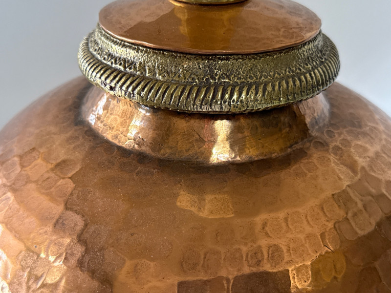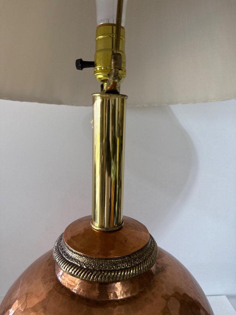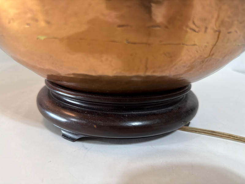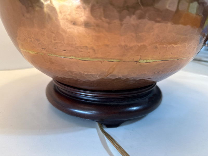 Lot # 32 - Rounded Hammered Copper Lamp Base With Brass Accent