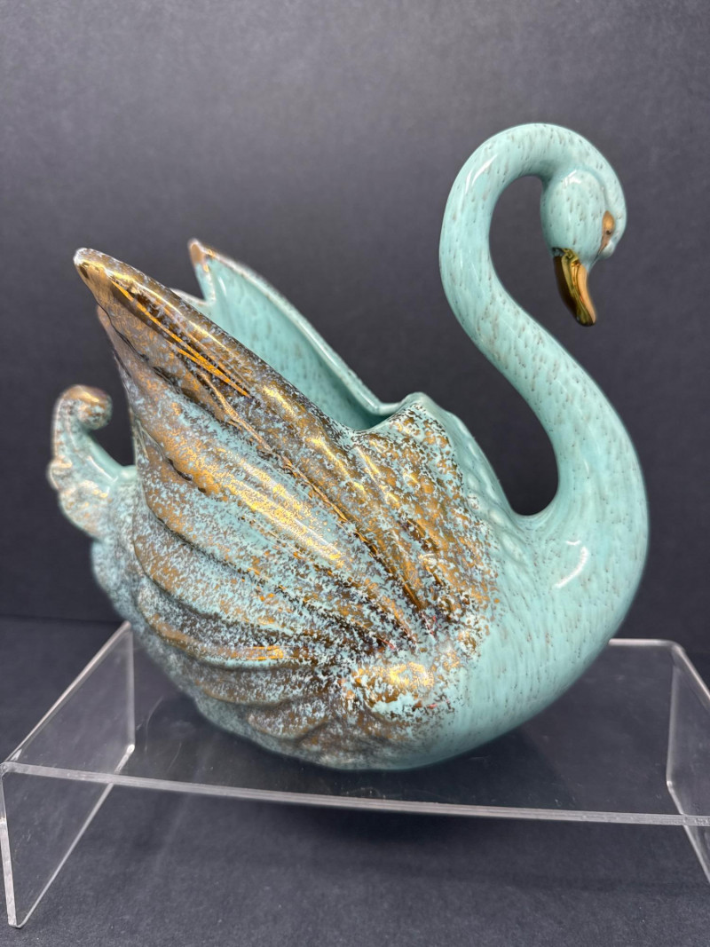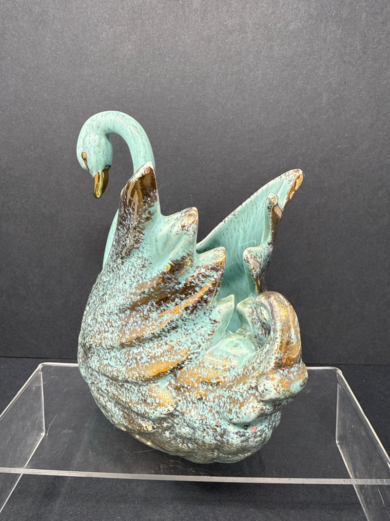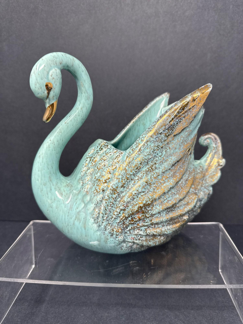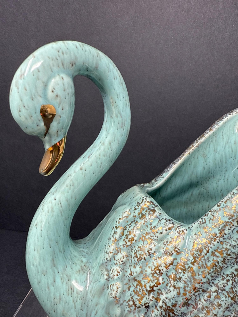 Lot # 49 - Mid-Century Speckled Ceramic Swan Planter & Shell Dish