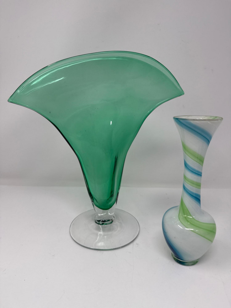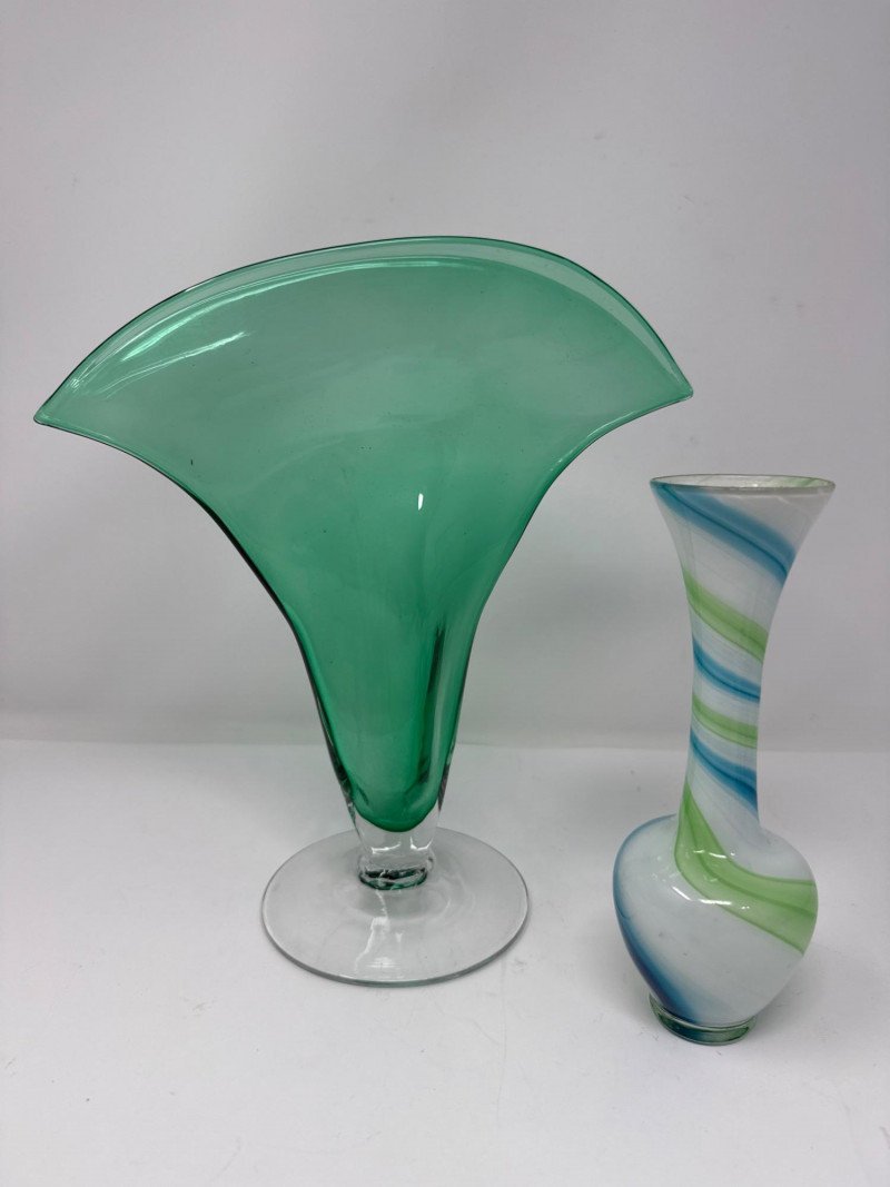 Lot # 66 - Blenko Mint Fan Vase & Enesco Swirl Vase – Mid-Century Art Glass