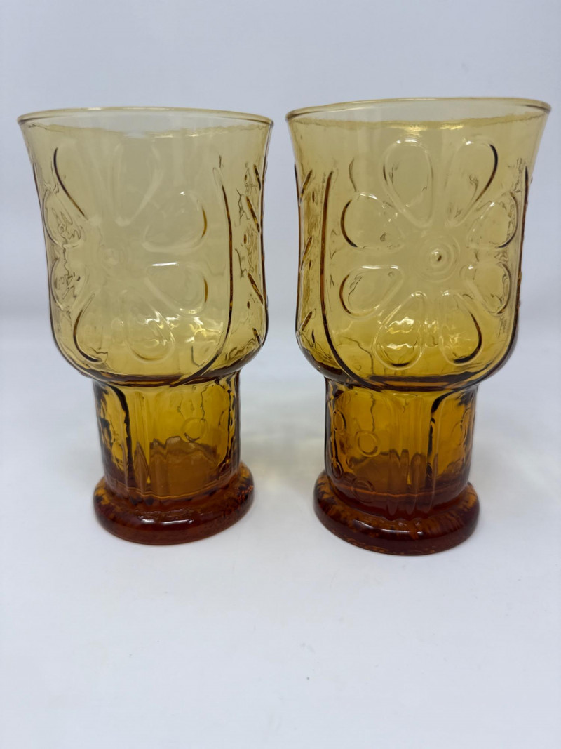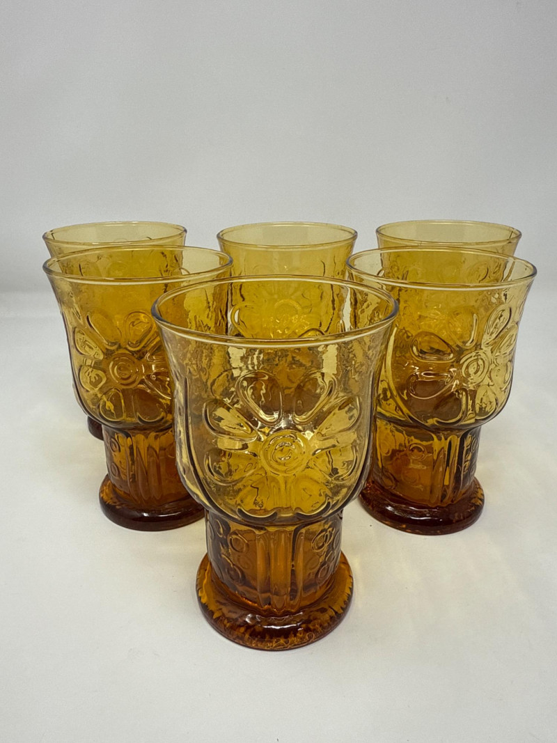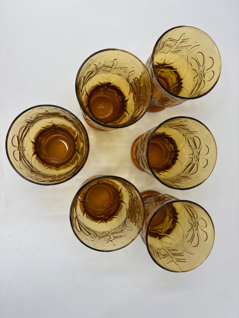 Lot # 77 - Vintage Libbey Amber Daisy Glass Beverage Set