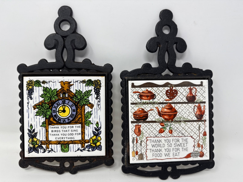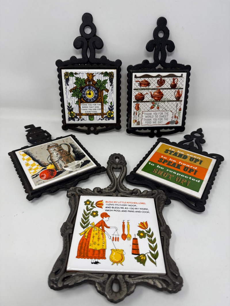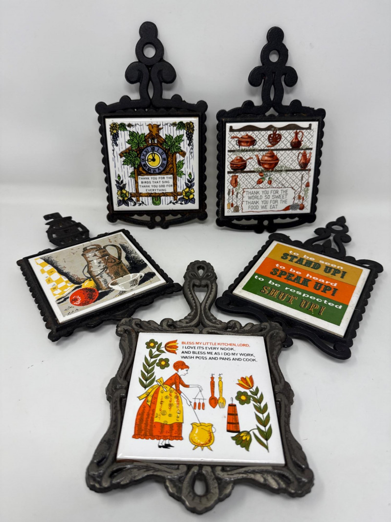 Lot # 79 - Set of Five Vintage Japanese Cast Iron and Tile Wall Trivets