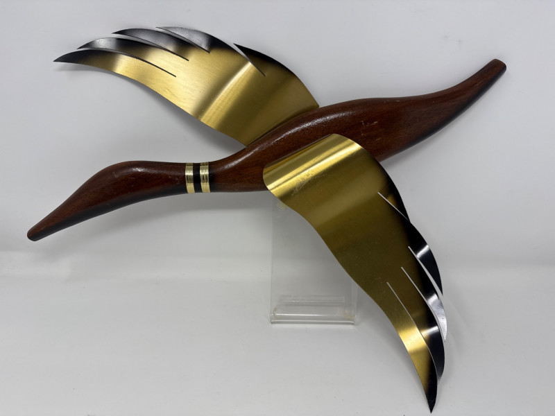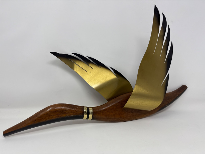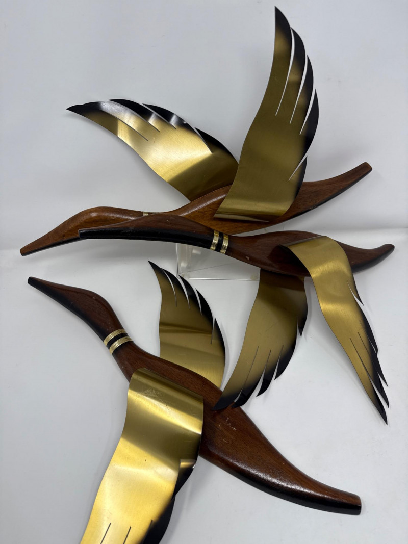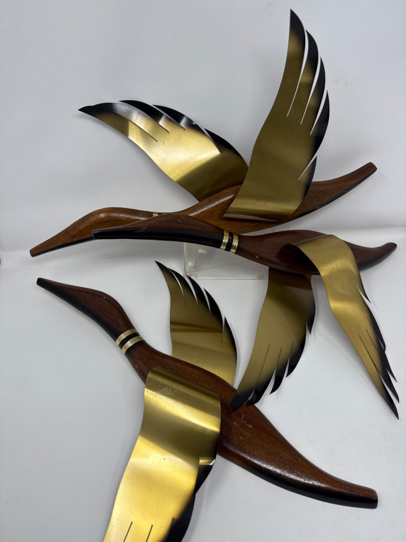 Lot # 81 - Mid-Century Modern Wood and Brass Soaring Mallards Sculpture
