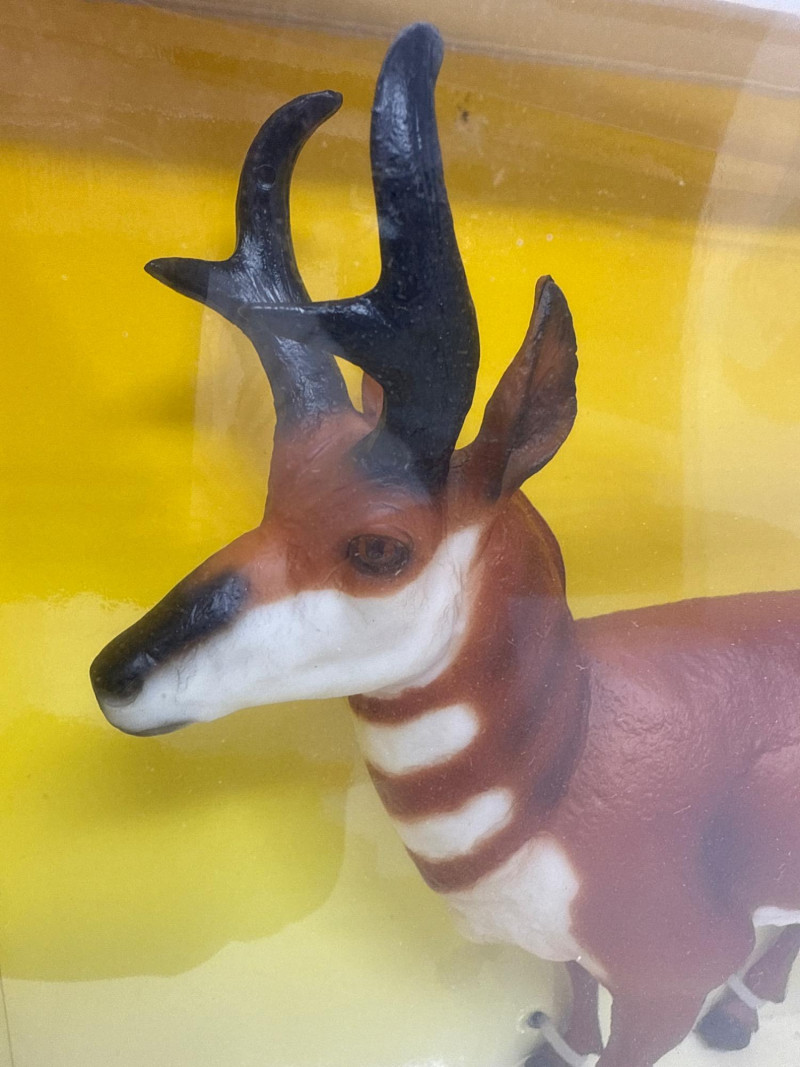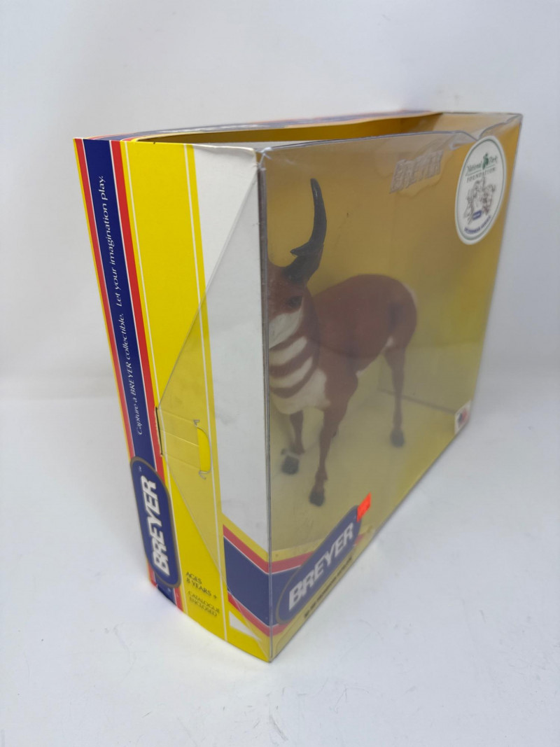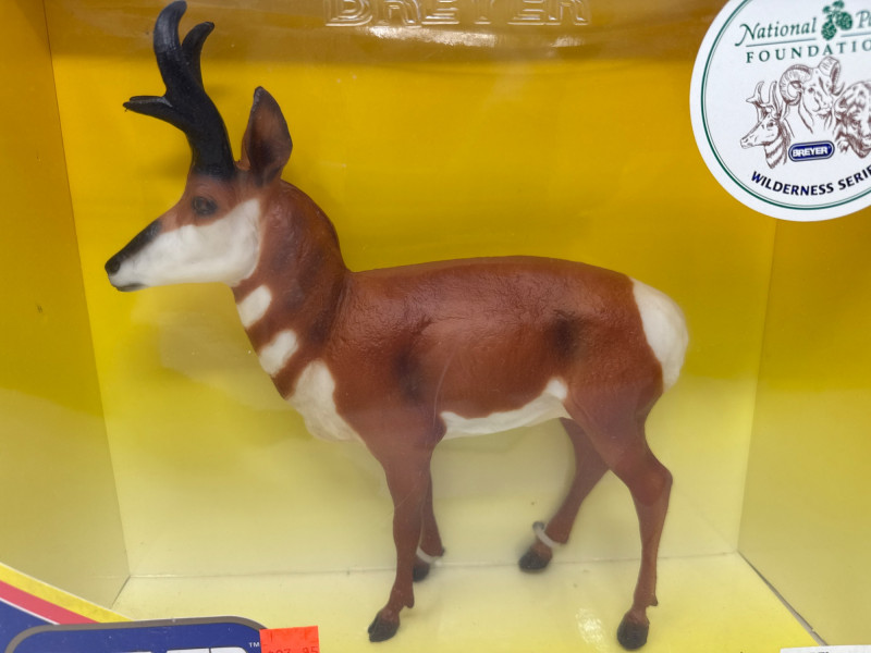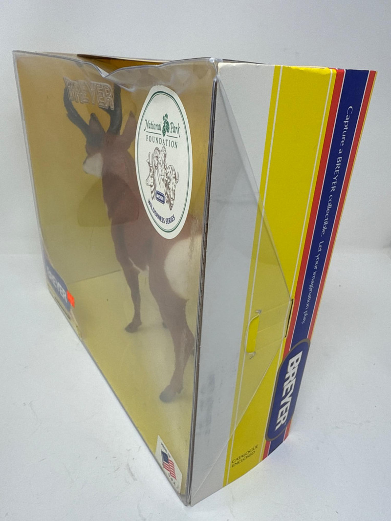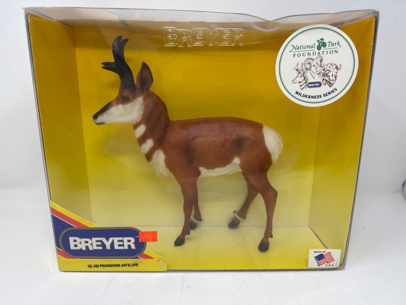 Celebrate the spirit of the American wilderness with this vintage Breyer Pronghorn Antelope, part of the National Park Foundation’s Wilderness Series. Model No. 389 captures the swift elegance of the pronghorn with lifelike detailing and dynamic posture. A collector’s favorite, this piece is ideal for wildlife enthusiasts, Breyer aficionados, or those curating nature-inspired displays. Manufacturer: Breyer