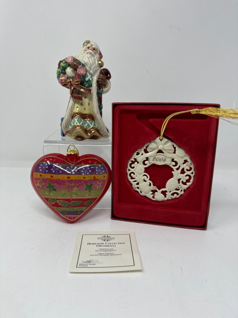 Lot # 106 - Trio of Holiday Ornaments – Fitz & Floyd, Lenox, Li Bien