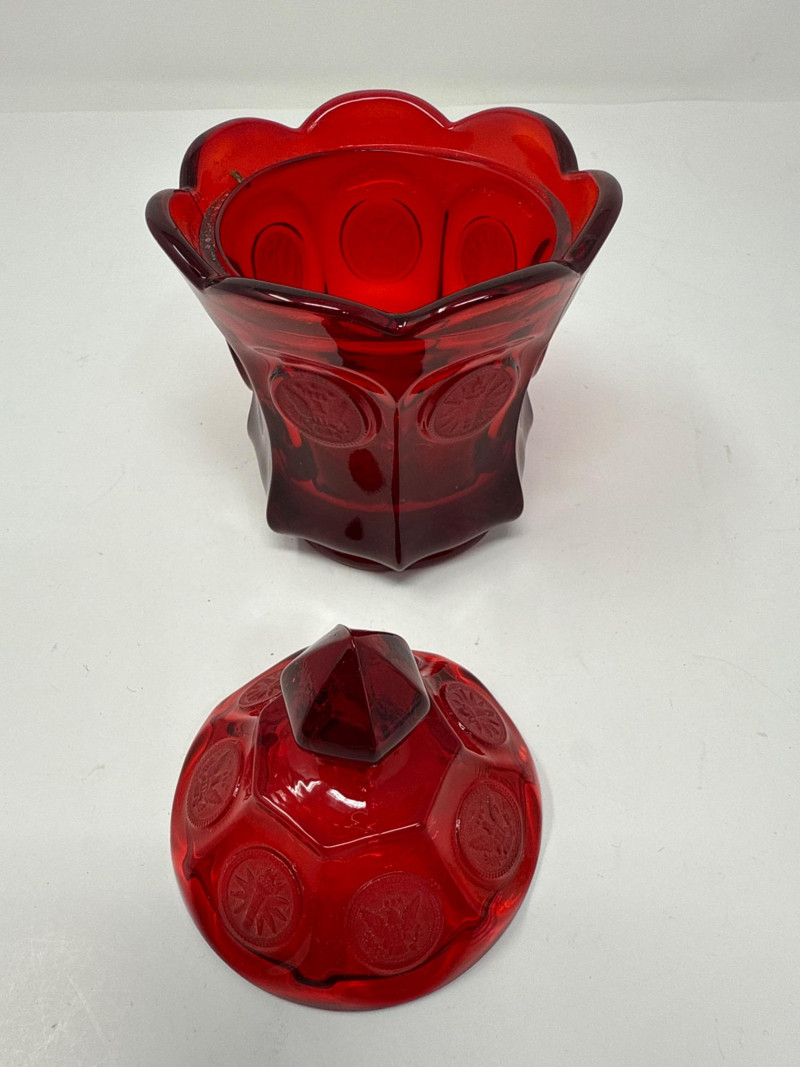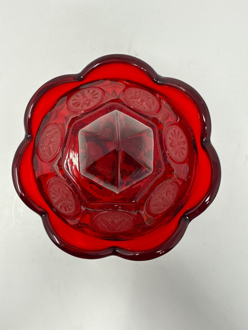 Lot # 124 - Vintage Glass Candy Dish – Fostoria Ruby Red & Green Pressed Glass