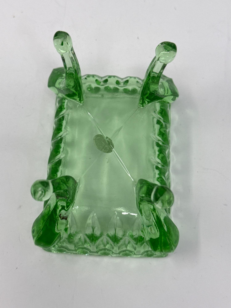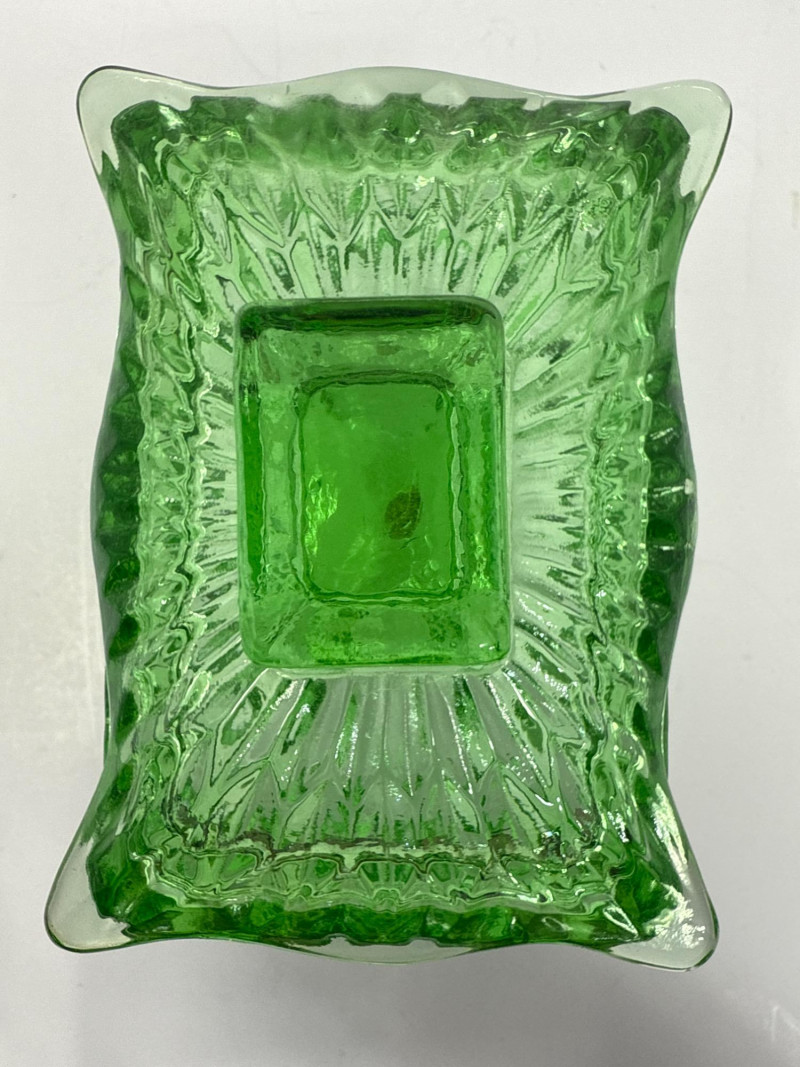 Dimensions: Approx. 7.25" H × 4.25" W Green Pressed Glass Vanity Box (Late 20th Century)