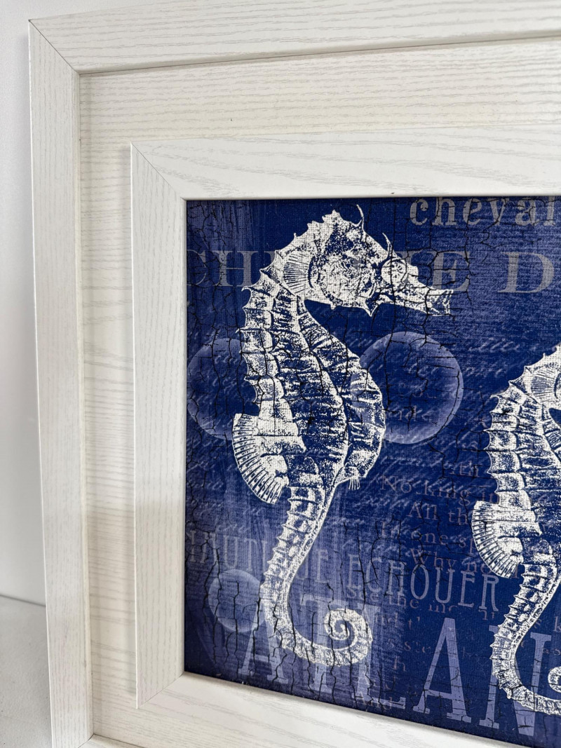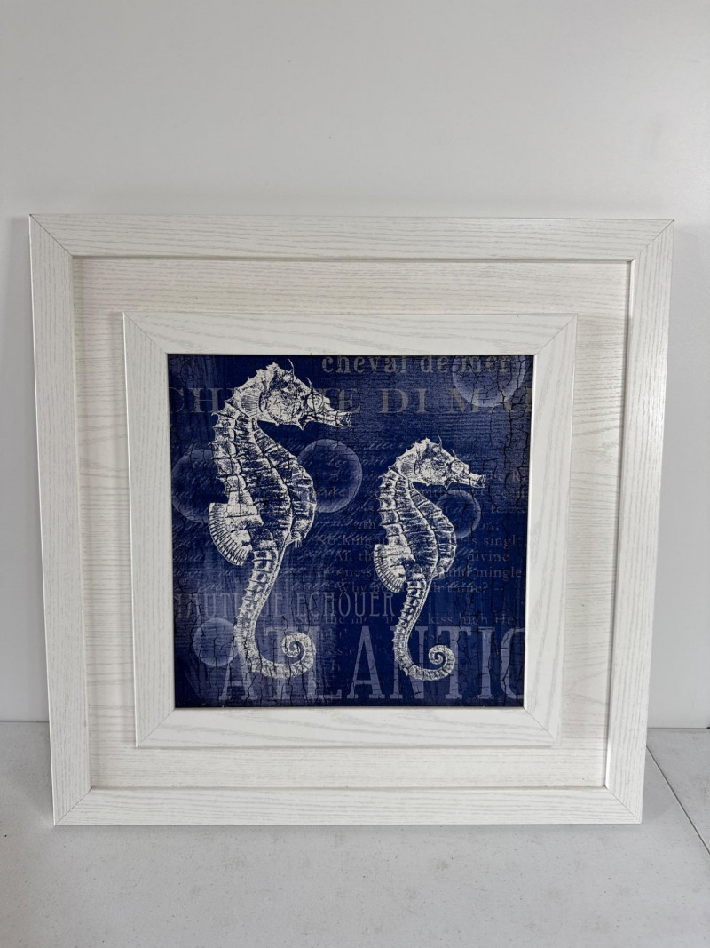 Navy Sea Horses by Lula Bijoux – Framed Decorative Print