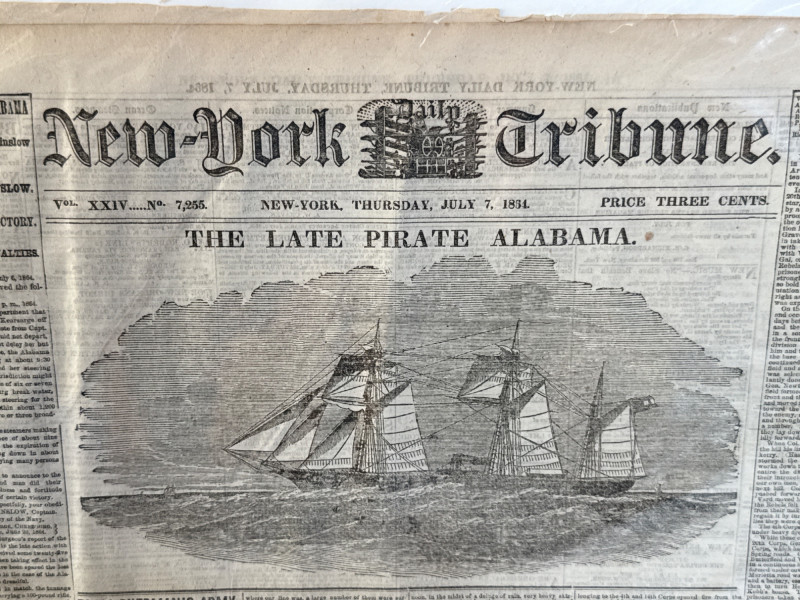Lot # 196 - Original 1864 Civil War Newspaper – New-York Tribune, The Late Pirate
