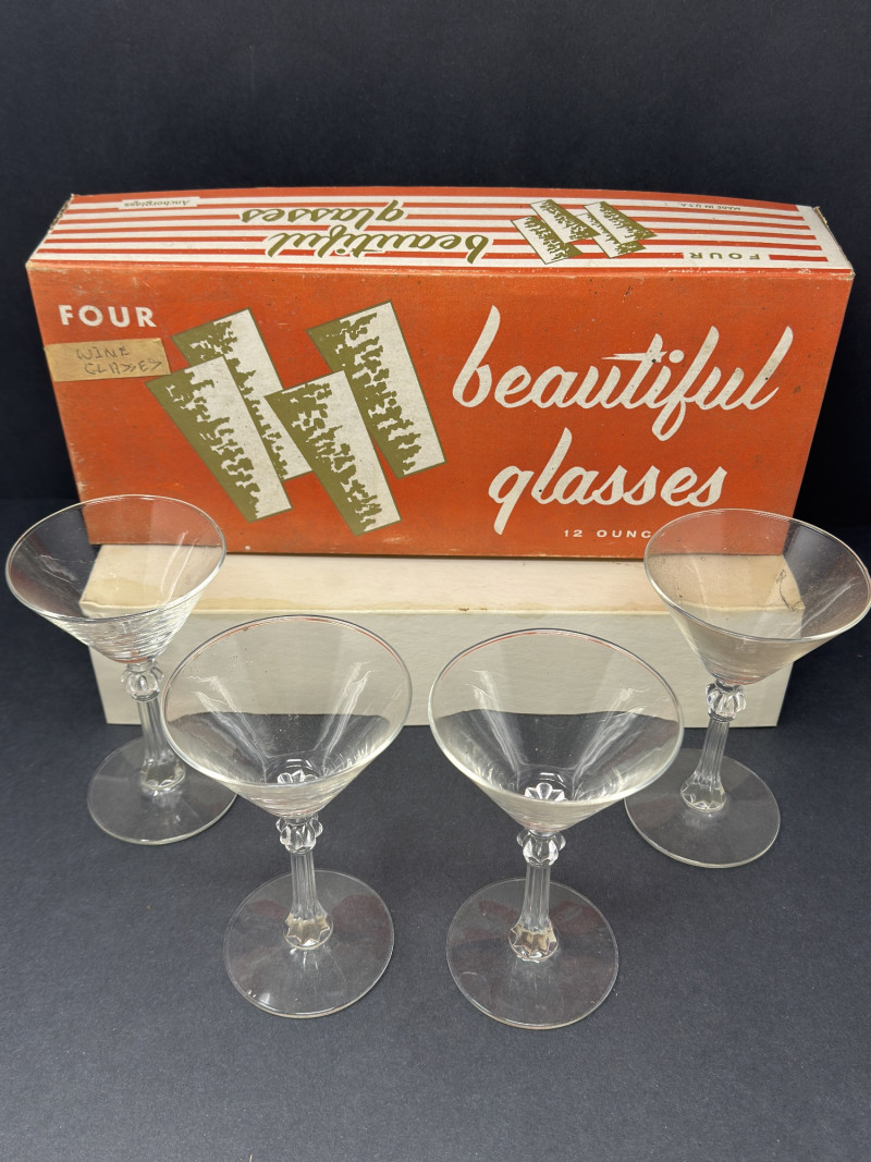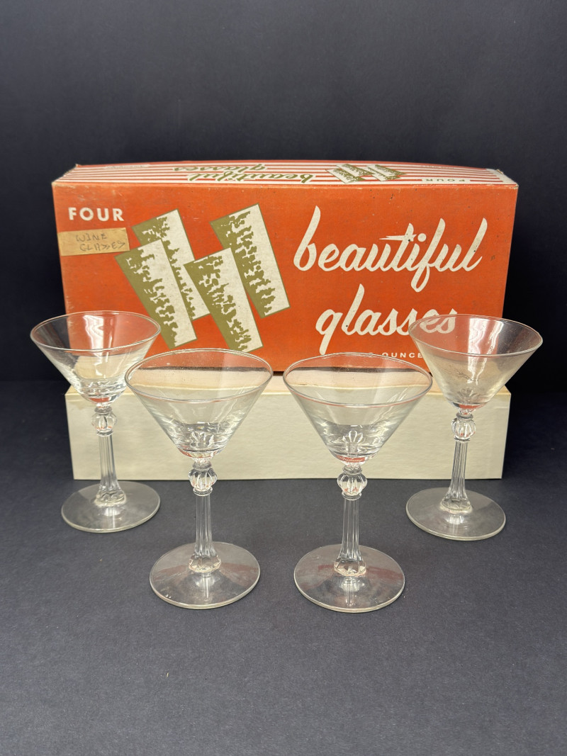 Lot # 29 - Vintage Boxed Set of 4 Stemmed Glasses – Mid-Century "Beautiful Glasse