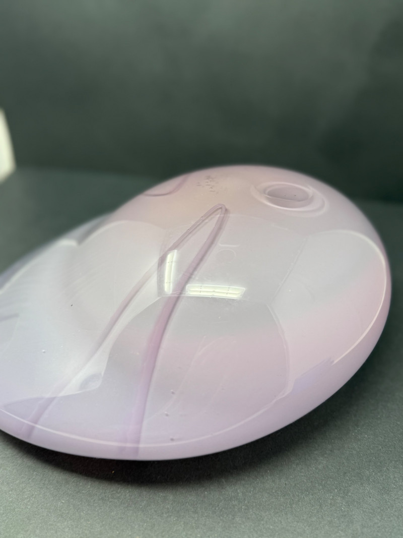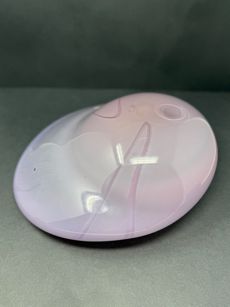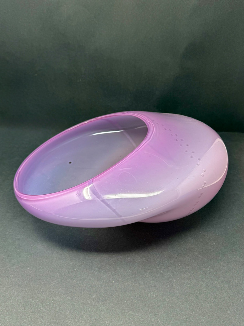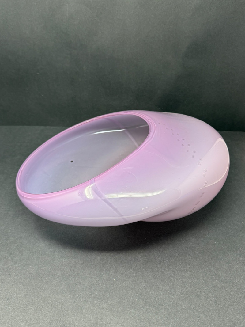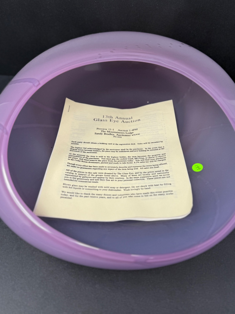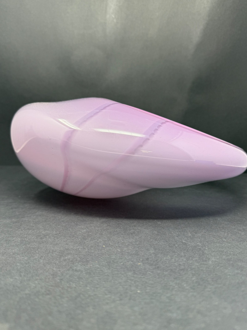 Glass Eye Studio Blown Glass Vessel – Lavender Sculptural Form (13th Annual Glass Eye Auction Provenance) Provenance: Measurements: Approx. 9" L x 6" W. Condition: Excellent condition with no chips or cracks noted. Minimal surface wear from age and display. Historical Note: Why Collectible: