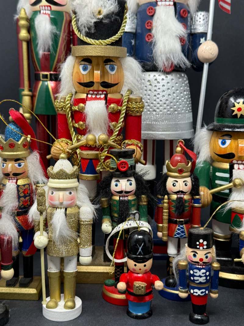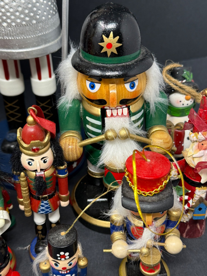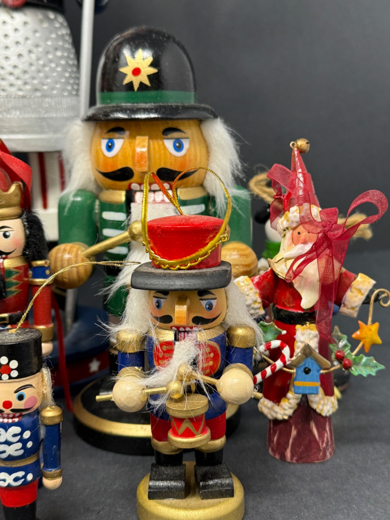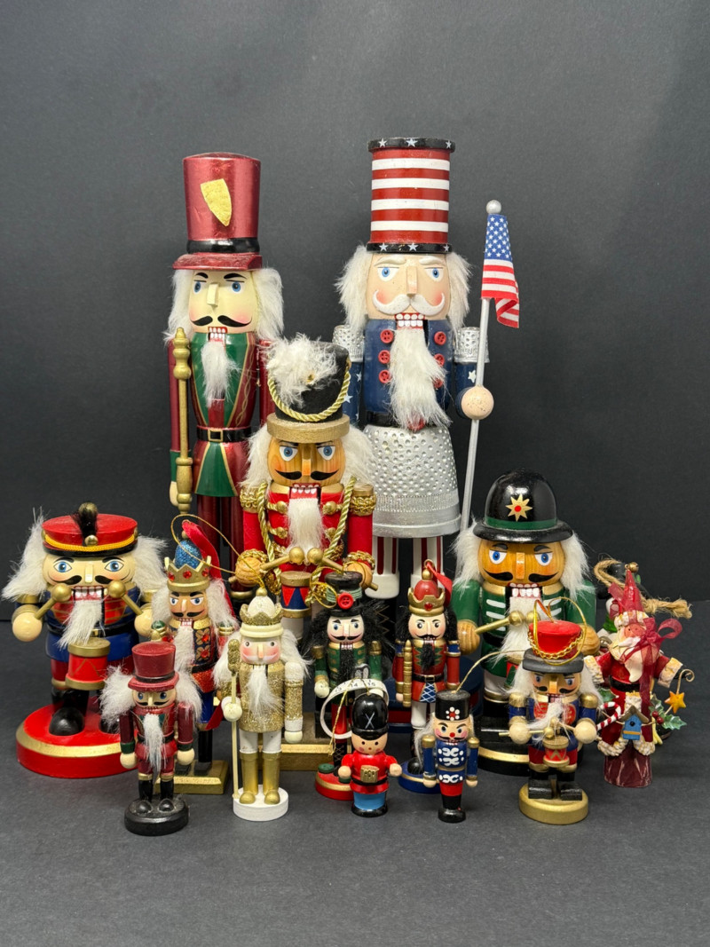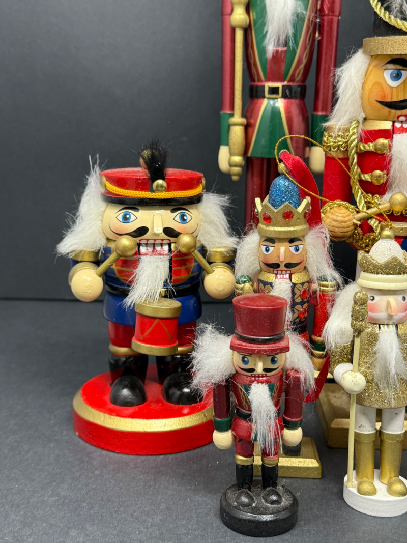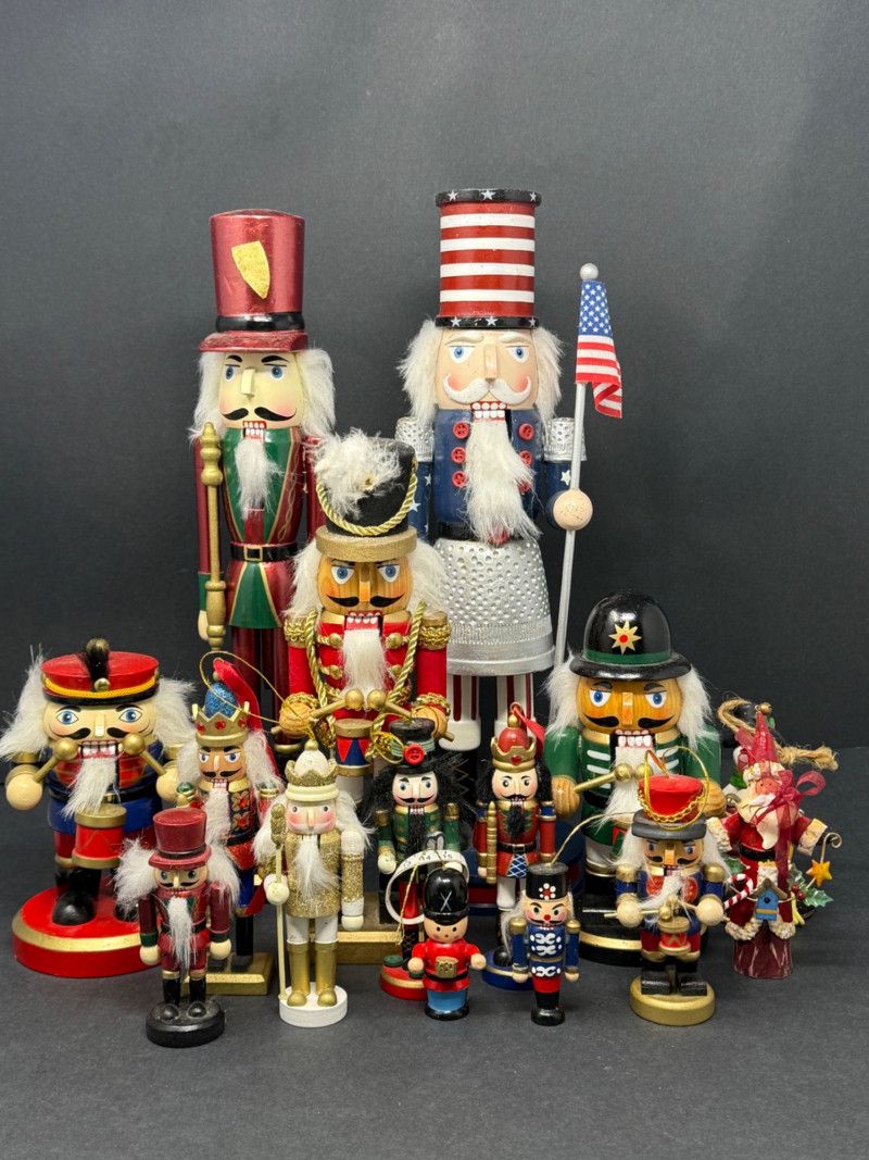 Nutcrackers have been cherished since their popularization in 19th-century Germany, symbolizing good luck and protection. This lot spans both decorative statement pieces and ornamental minis, offering instant holiday cheer and a wonderful starter collection (or expansion for an established one).