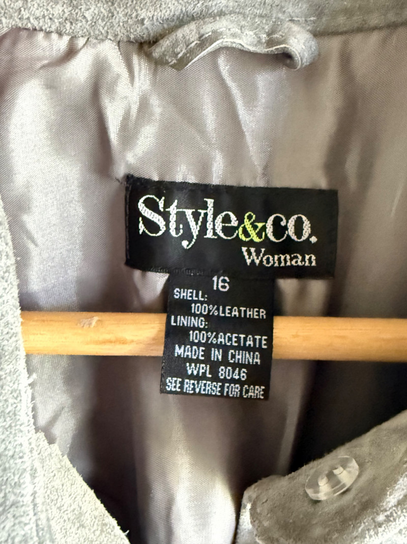 Style & Co. leather jackets are valued for their balance of affordable luxury and everyday wearability. This size 16 suede piece is versatile enough to style up or down—perfect for layering in cool weather while maintaining a classic look.