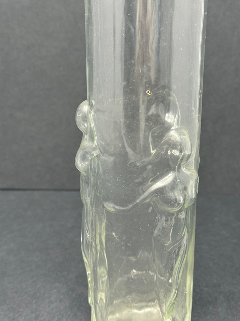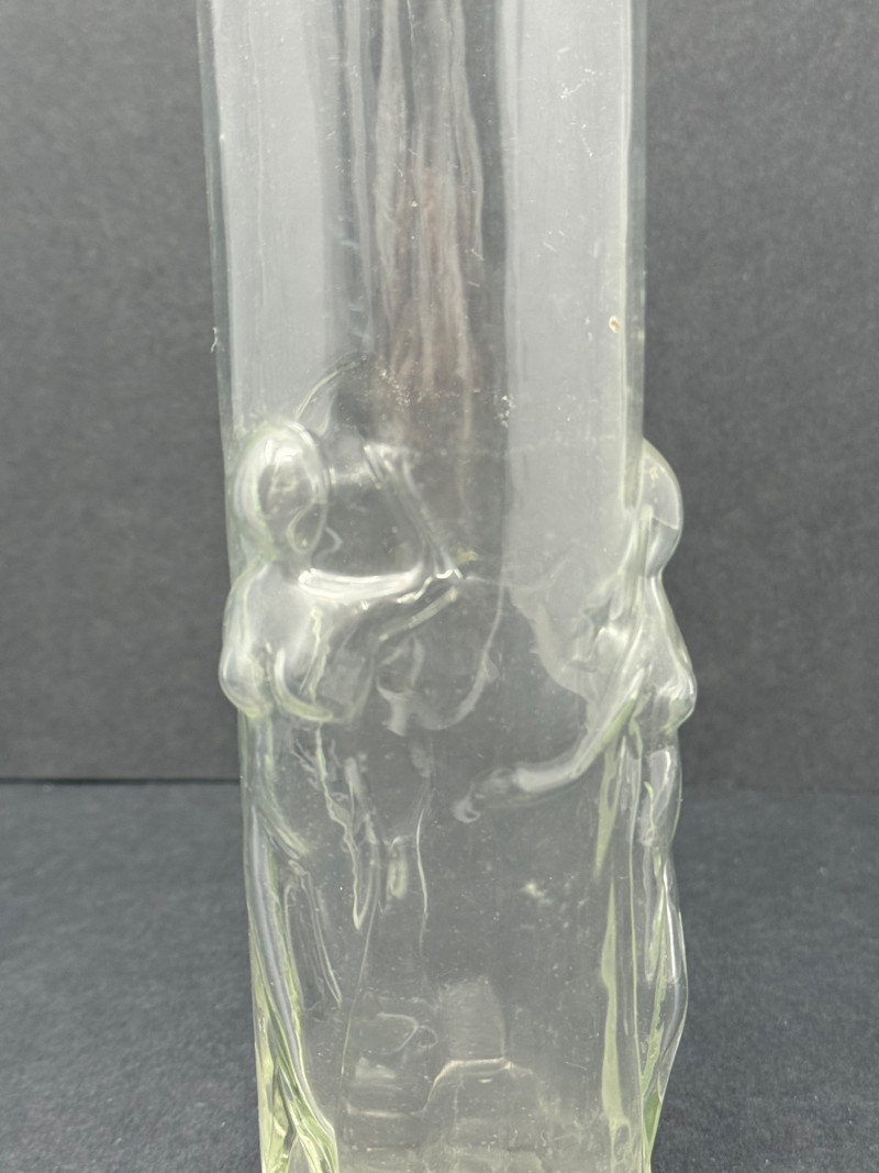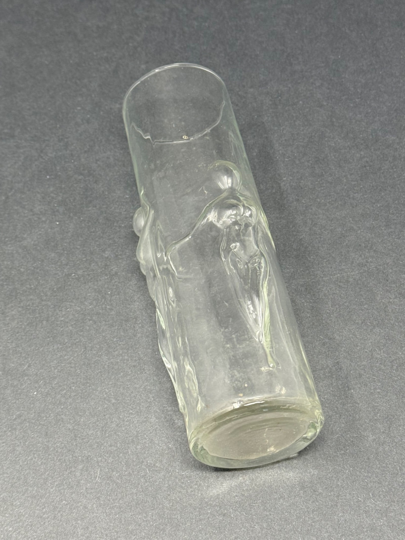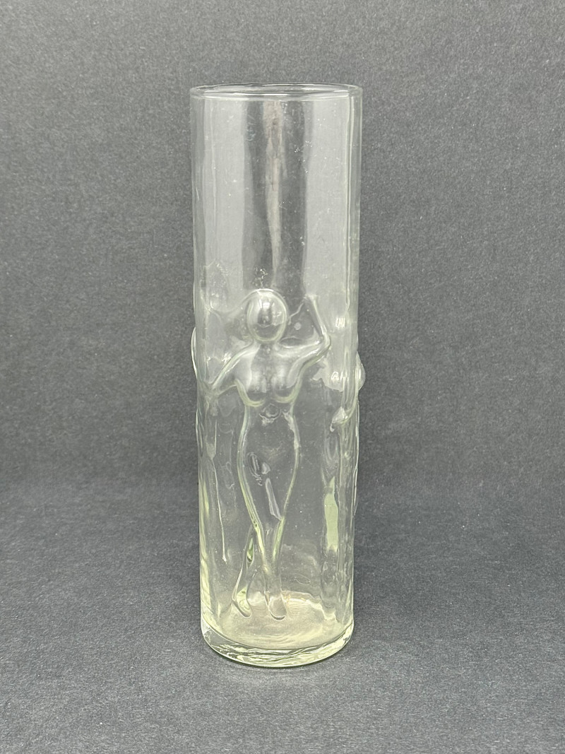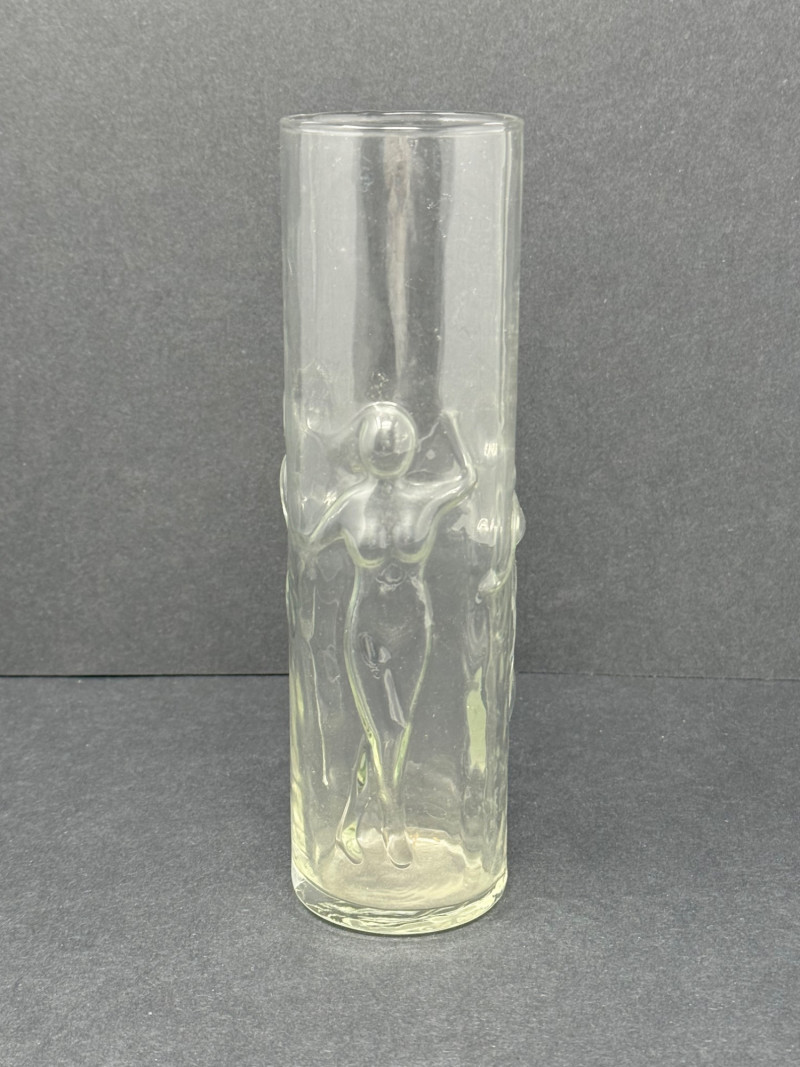 Design: Tall cylindrical highball with molded nude female figures in relief