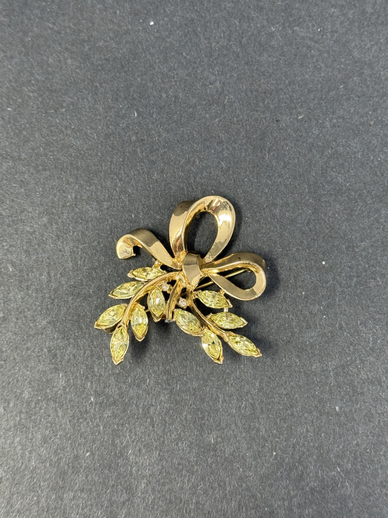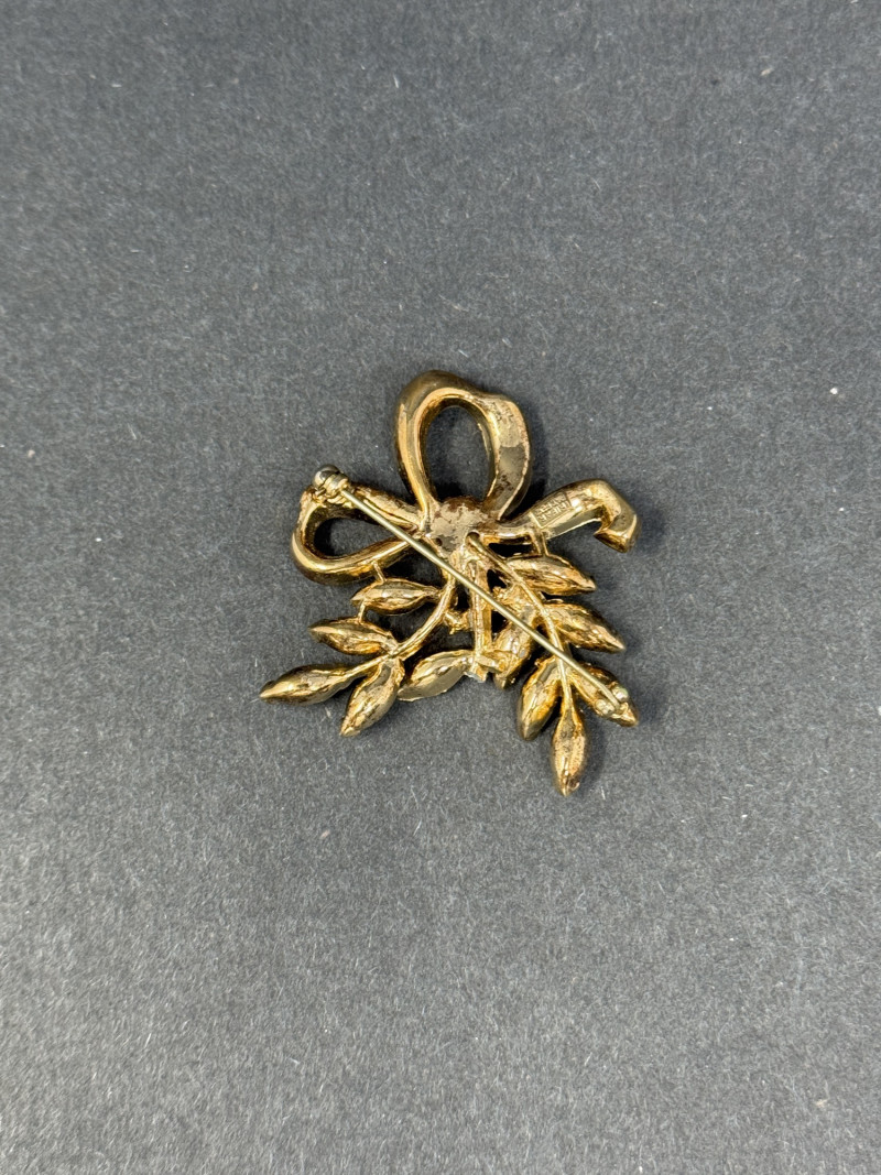 Lot # 44 - Vintage 1960s Trifari Rhinestone Bow & Laurel Brooch