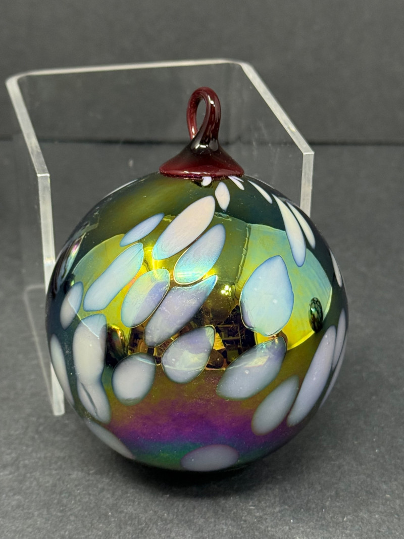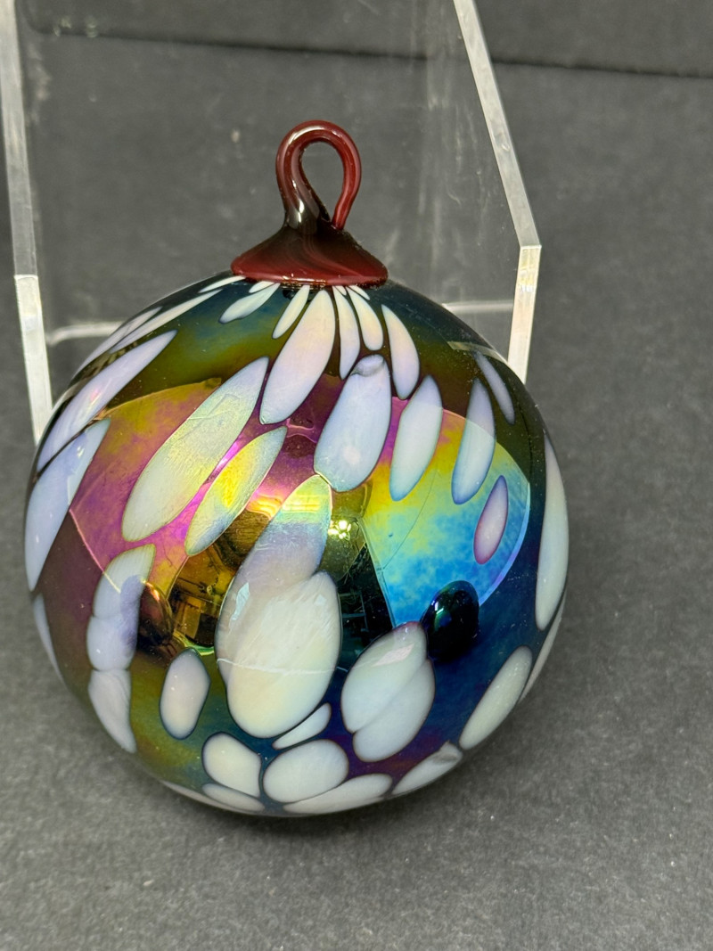 Friendship Hand-Blown Iridescent Glass Ornaments – Set of 7 (1960s–1970s) Brand: Friendship Glass Historical Note: Friendship glass ornaments, often referred to as witch balls, trace their origins back centuries in Europe and America, where they were believed to ward off negativity and bring good fortune. By the mid-20th century, they became popular decorative collectibles, prized for their artistry and symbolic meaning. Why it’s special: This set captures the magic of mid-century blown glass — shimmering colors, folk tradition, and unique handmade craftsmanship.