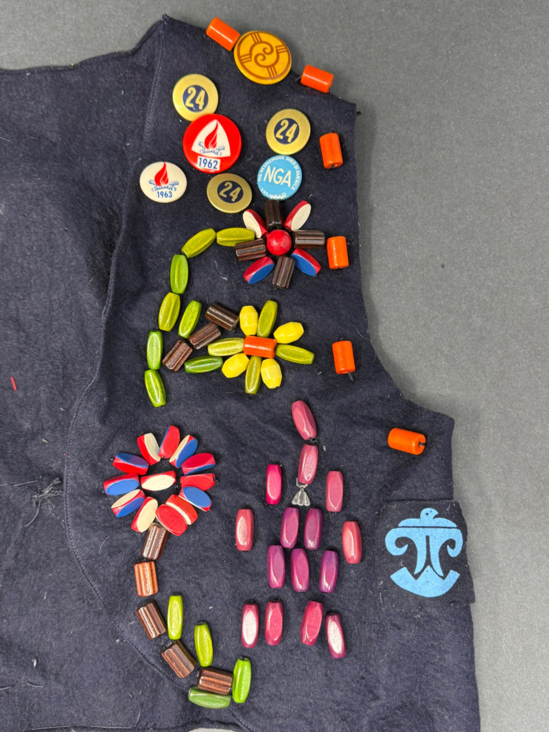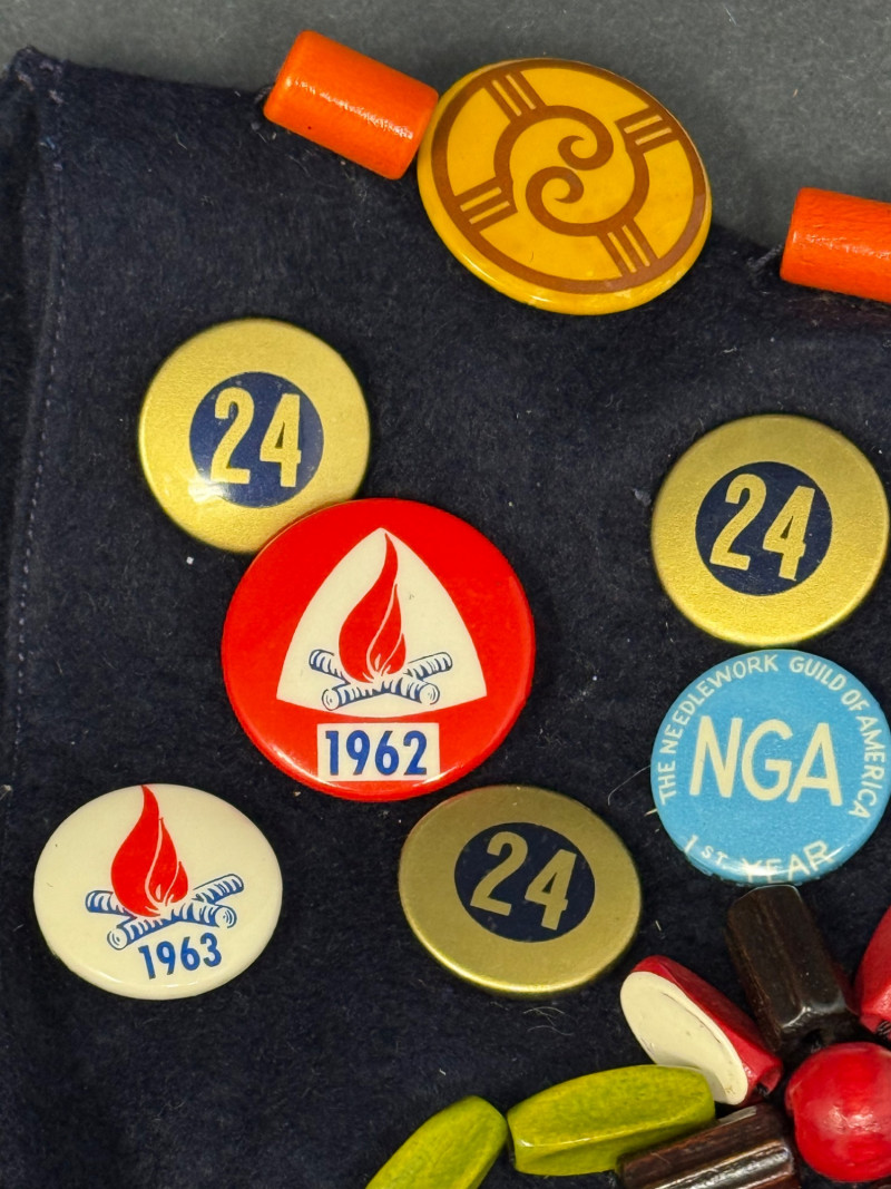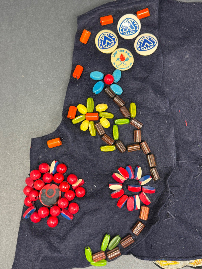 Lot # 89 - Vintage Camp Fire Girls Lot – Beaded Felt Vest, Pins, Beads, & More