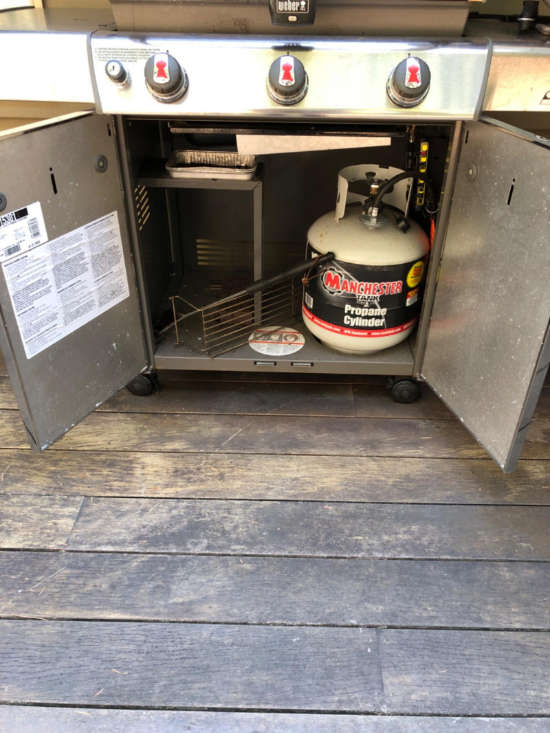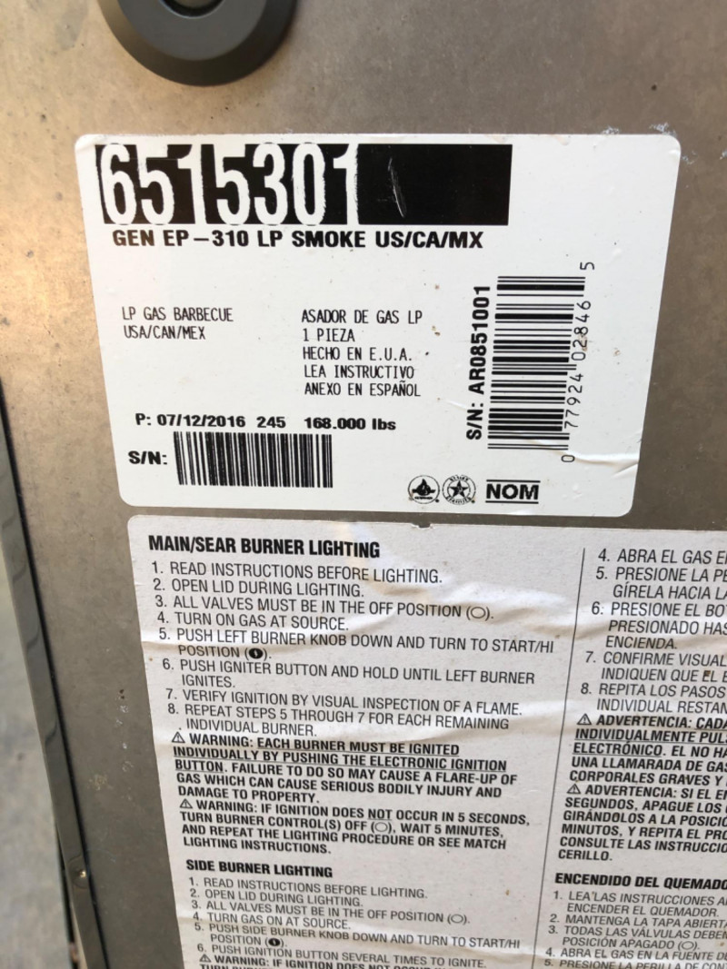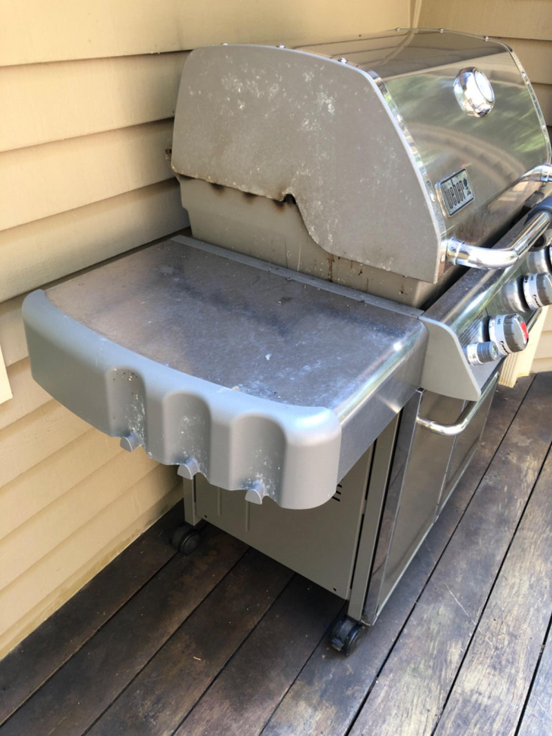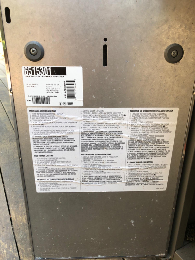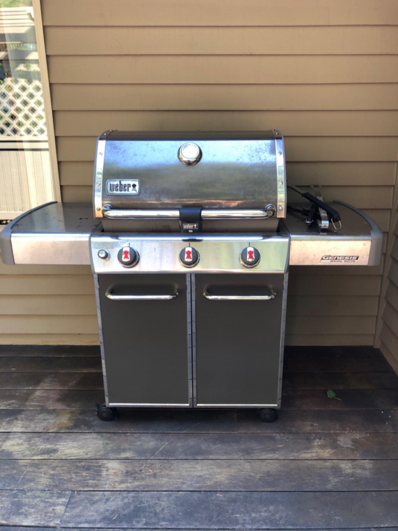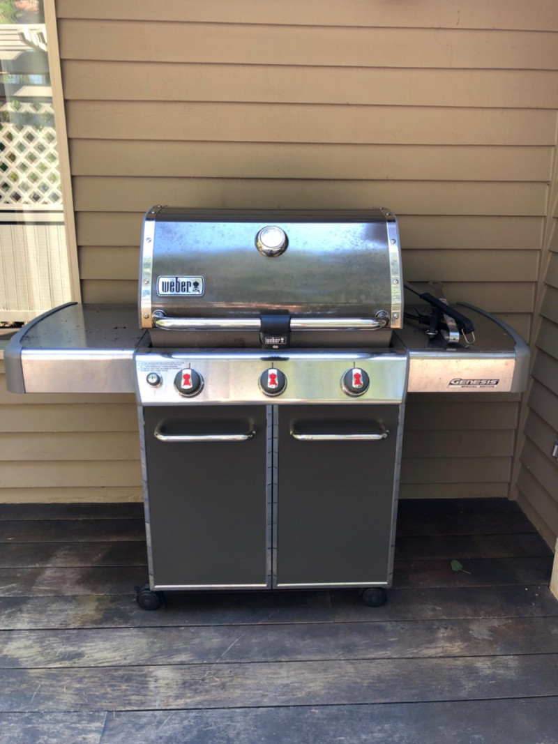 Fire up flavor with this Weber Genesis EP-310 LP grill in a sleek chrome-colored finish. Designed for serious backyard chefs, it features three stainless steel burners, precision temperature control, and a spacious cooking surface. Whether you're searing steaks or slow-grilling veggies, this powerhouse delivers consistent heat and classic Weber reliability. Includes side tables, storage cabinet, and cast-iron grates. Some signs of use, but fully functional and ready for your next cookout. With a cleaning and/or grill/burner replacements - this grill will deliver the BBQ results. Gas grill that can run with propane tank.
