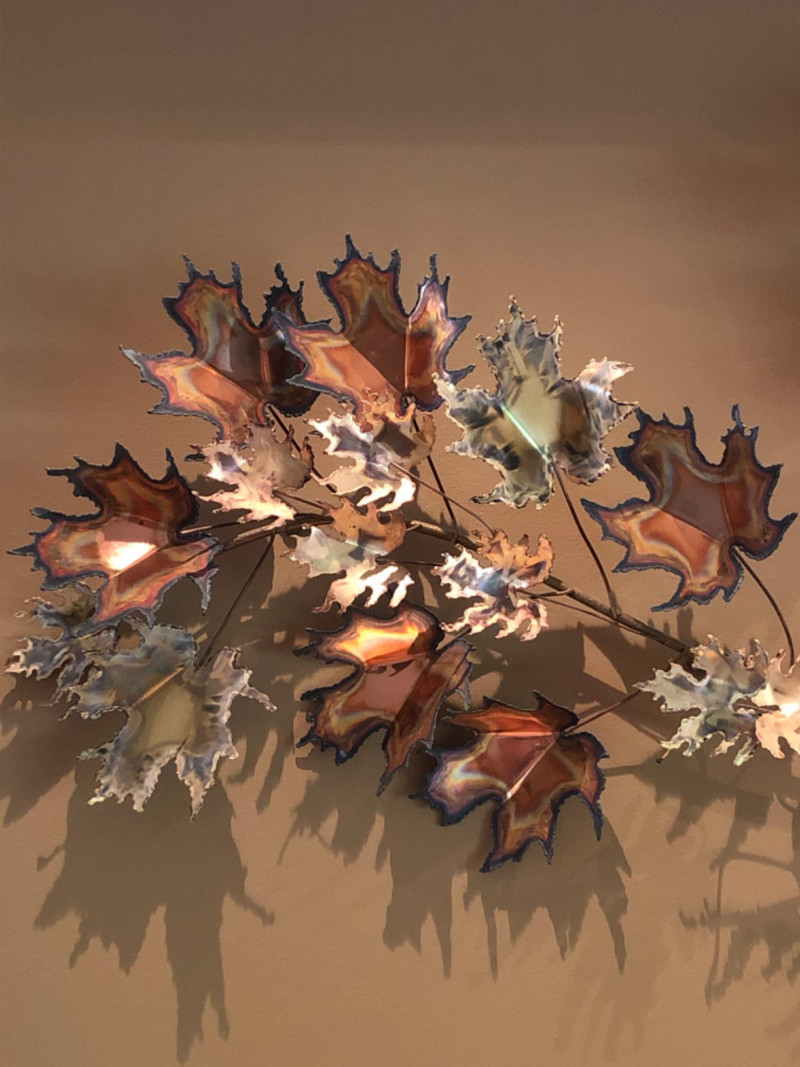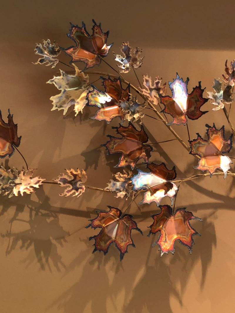 Lot # 7 - Curtis Jere Copper Leaf & Branch Wall Sculpture — Signed 1971