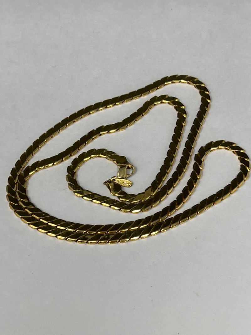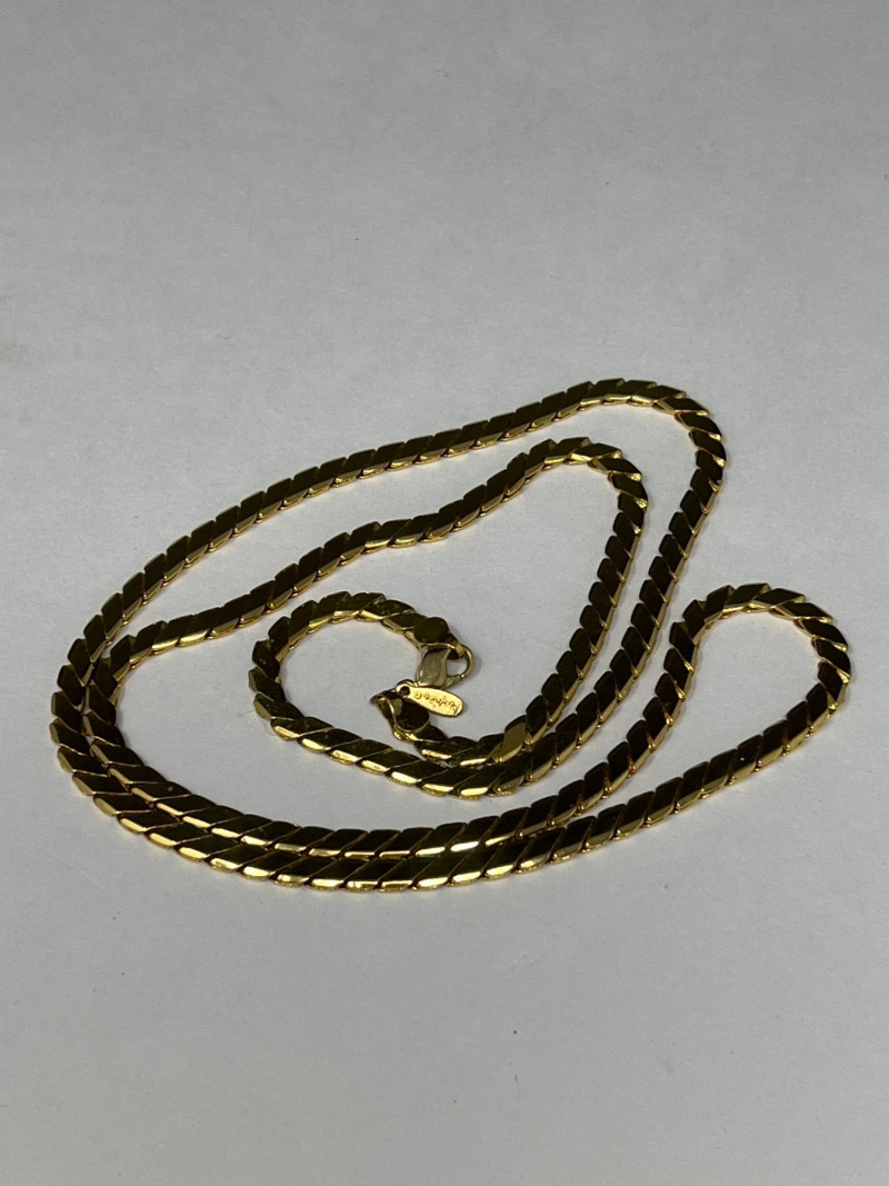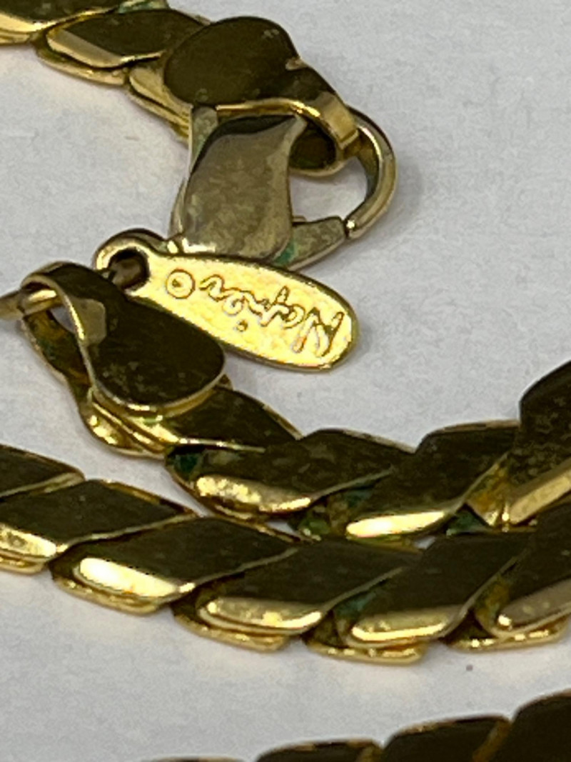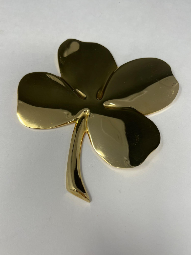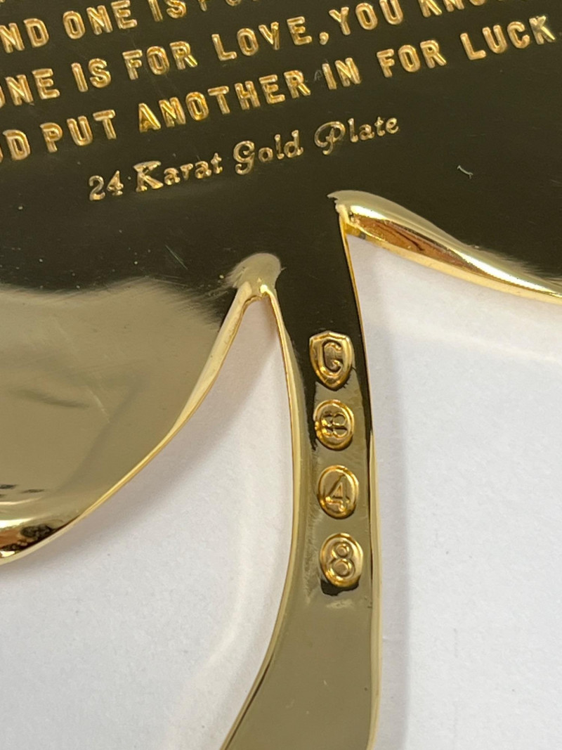 A radiant ensemble of gold-toned necklaces (e.g.: Napier, Korea) paired with a striking 24kt gold-plated four leaf clover pendant. The clover, measuring 5" tall by 4.25" wide, evokes vintage charm and symbolic luck. Chain lengths include 28", 22" (two), 18", and 14", offering versatile styling options. Whether layered or worn solo, this collection adds warmth and whimsy to any jewelry curation.